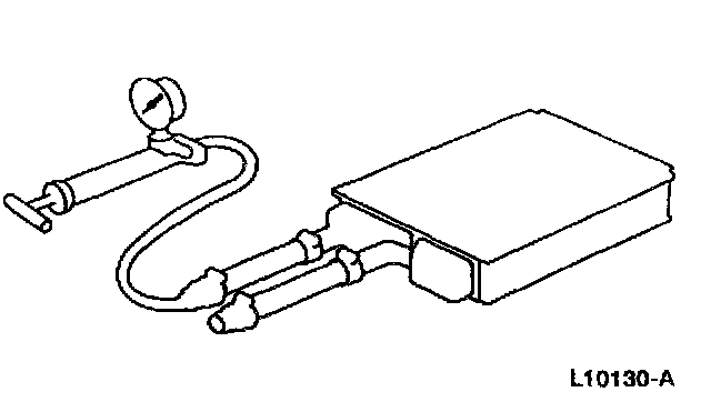 8. If the pressure drops, check the heater water hose connections to the core tubes for leaks. If the heater water hoses do not leak, remove the heater core from the vehicle and carry out the bench test.