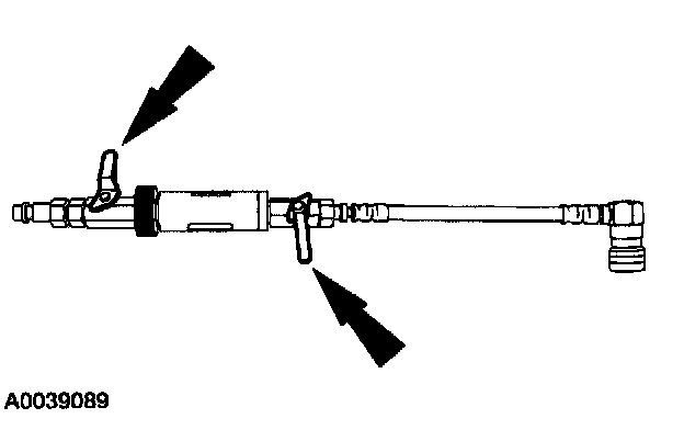 3. Install the special tool between the high-pressure and low-pressure service gauge port valves.