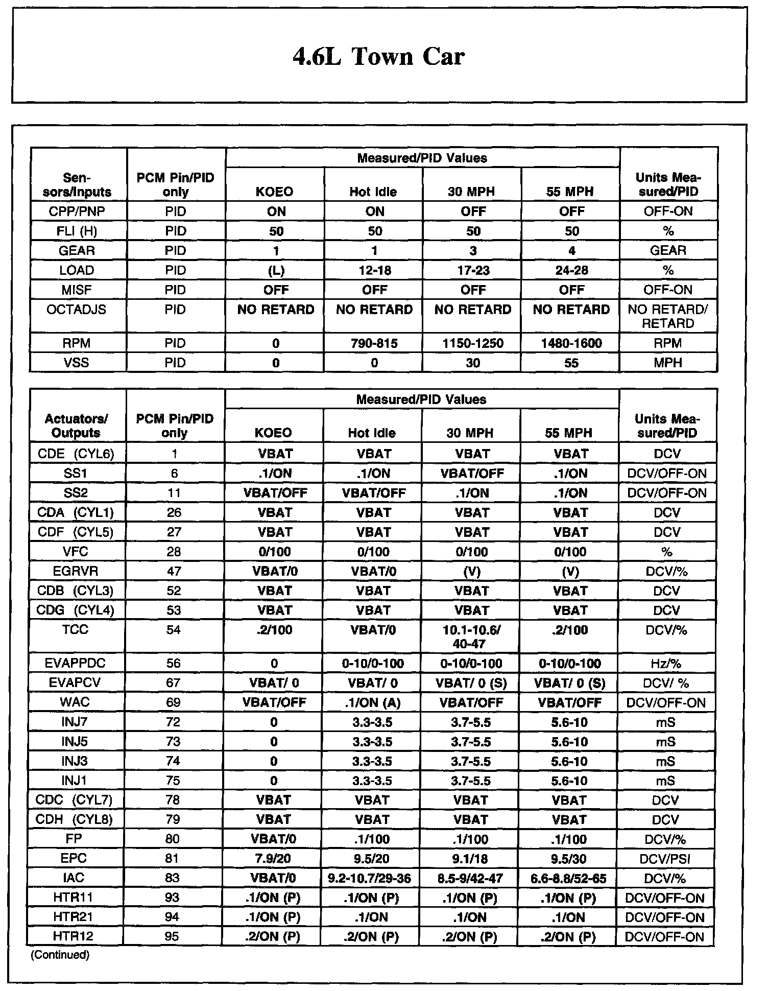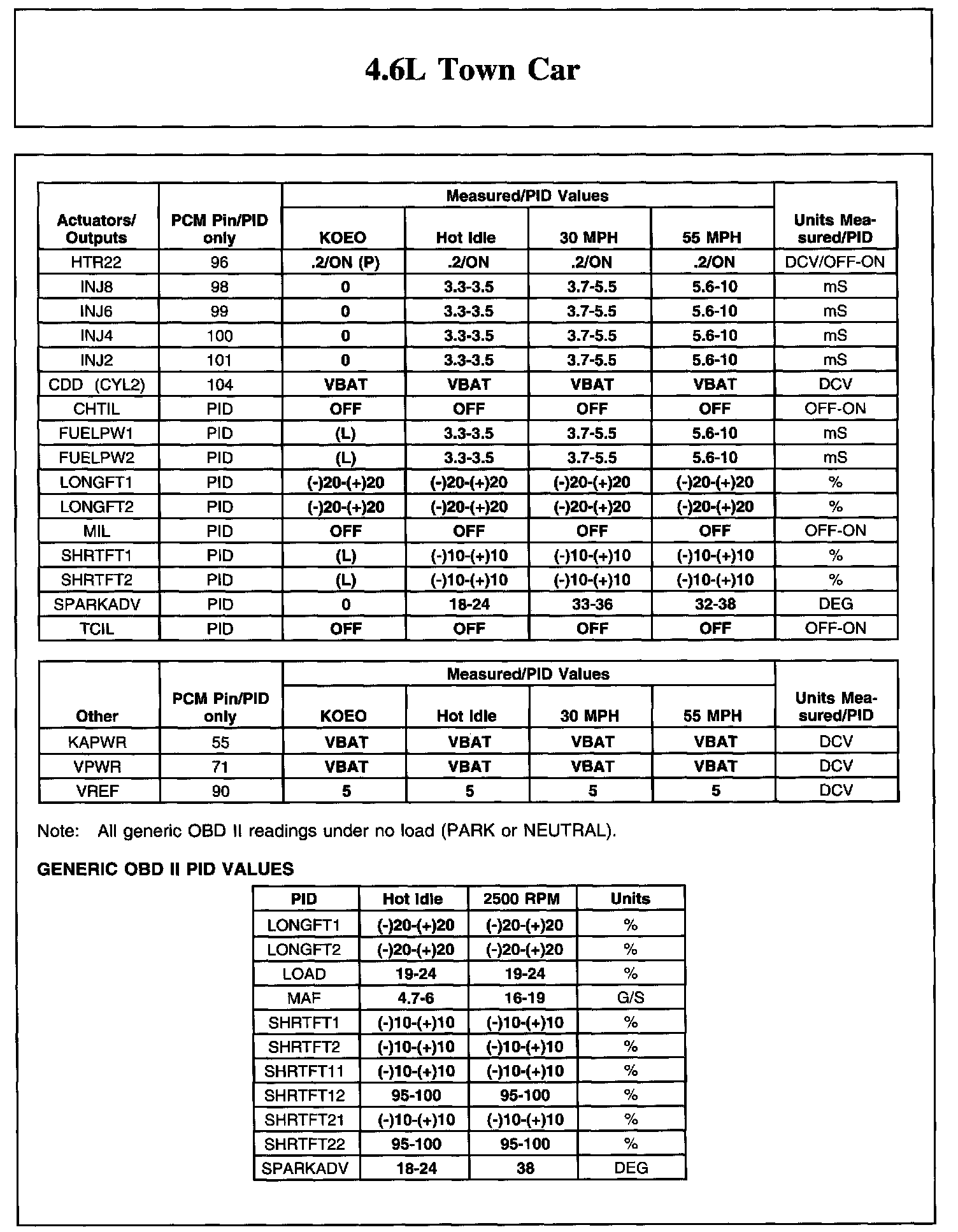 The Typical Diagnostic Reference Value Charts do not display fault PIDs. These are PIDs which indicate a hard fault with the circuit. They display a value of "YES" or "NO" and are PIDs ending with an "F".
