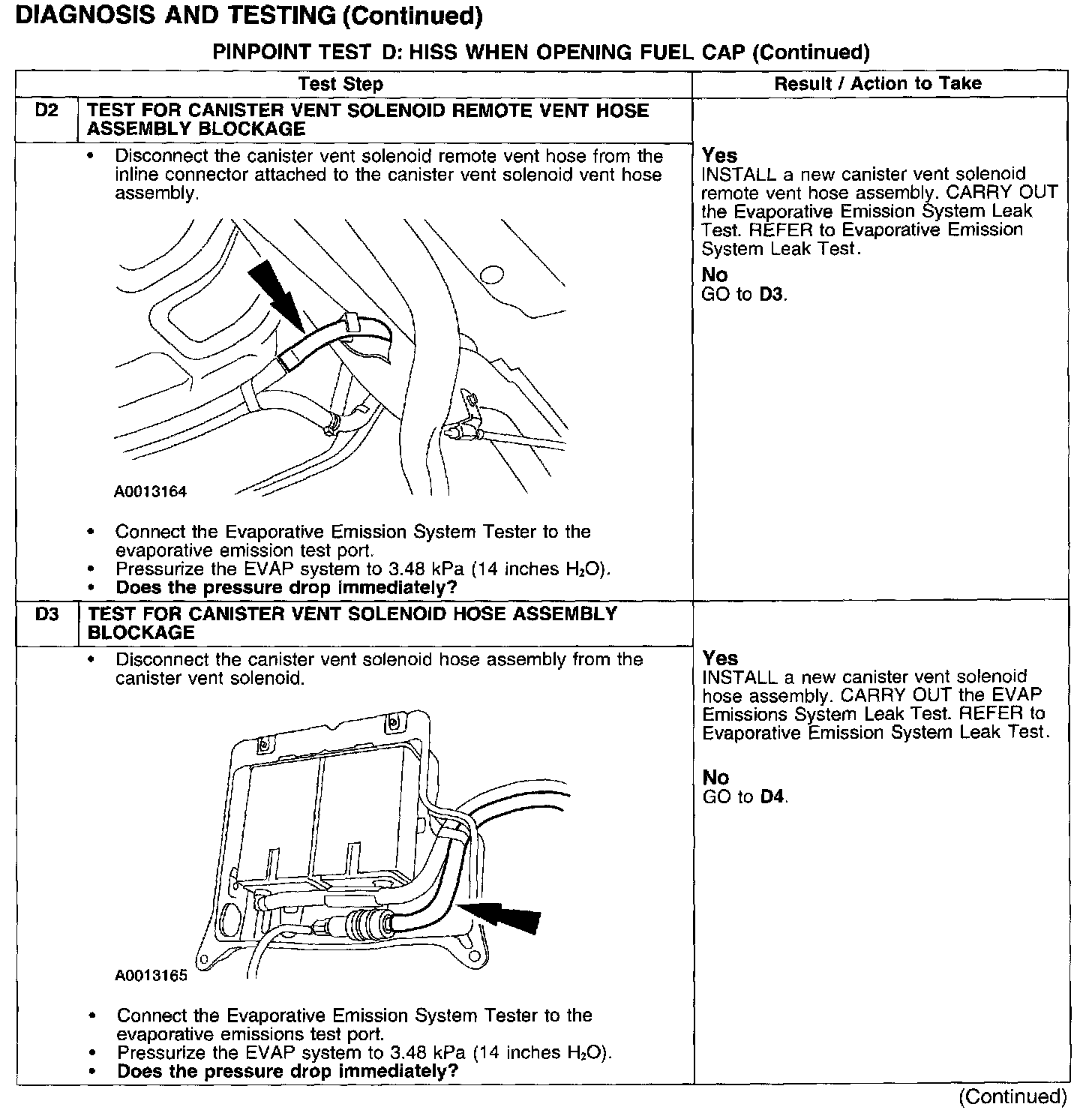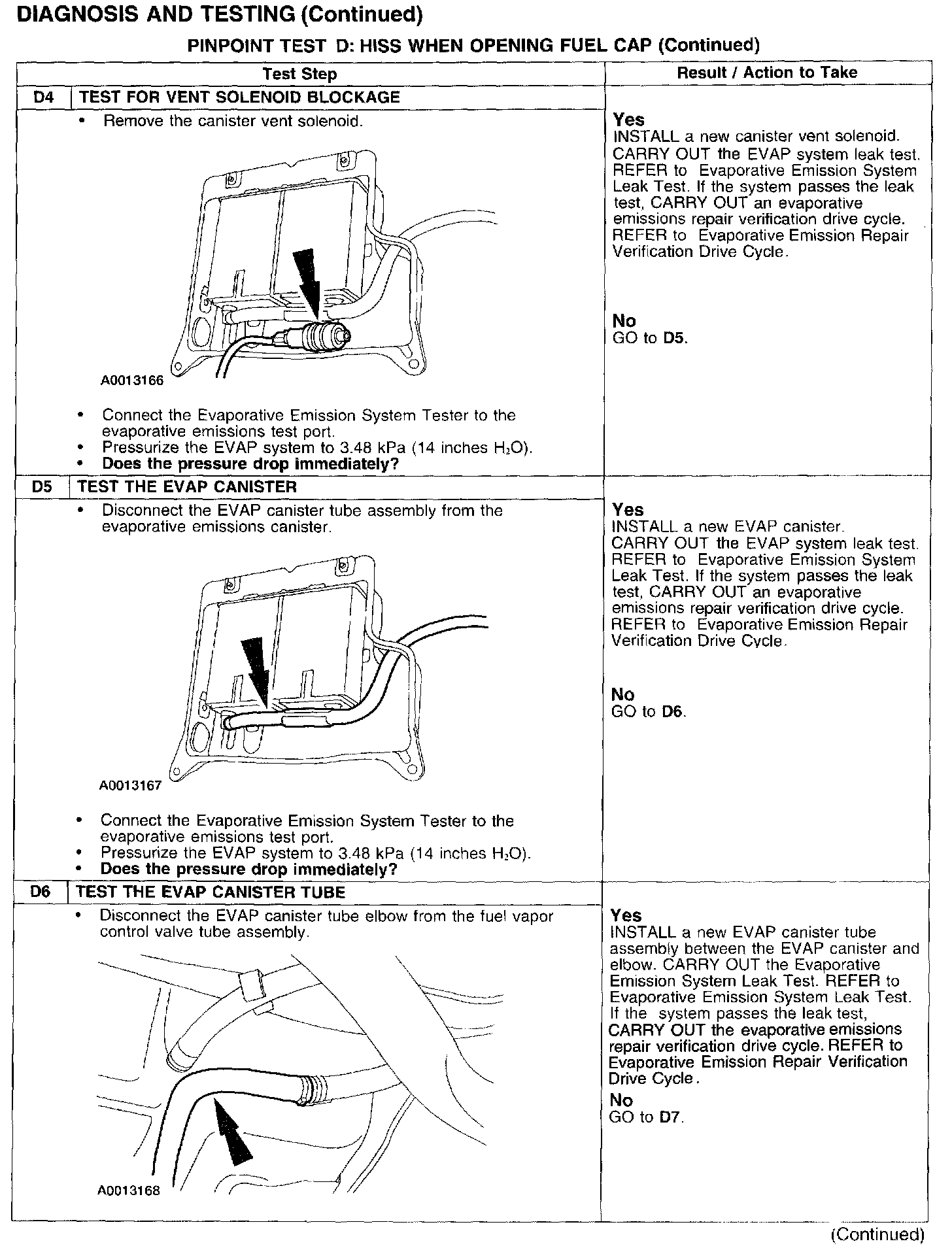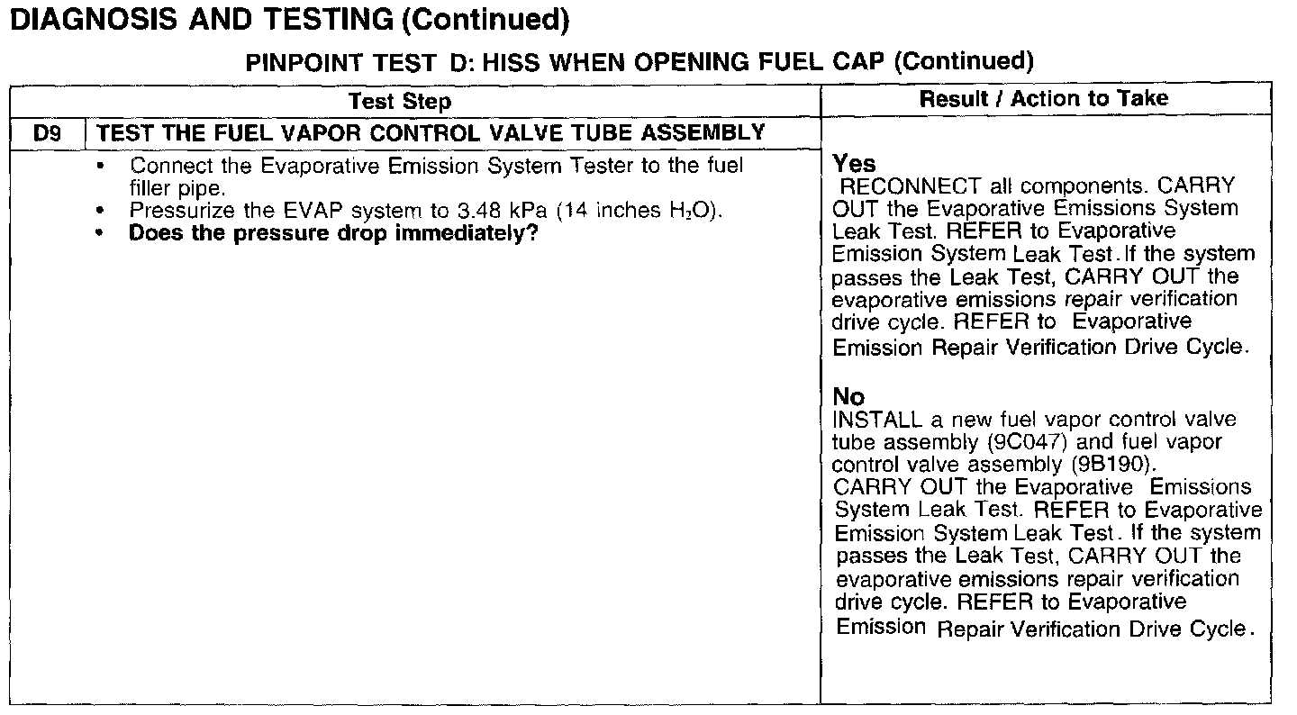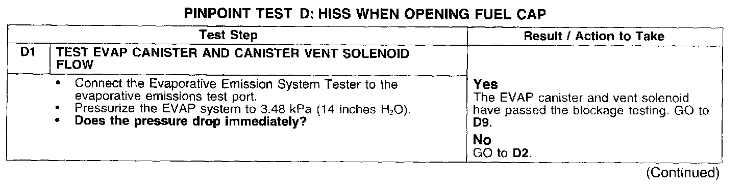 PINPOINT TEST D: HISS WHEN OPENING FUEL CAP