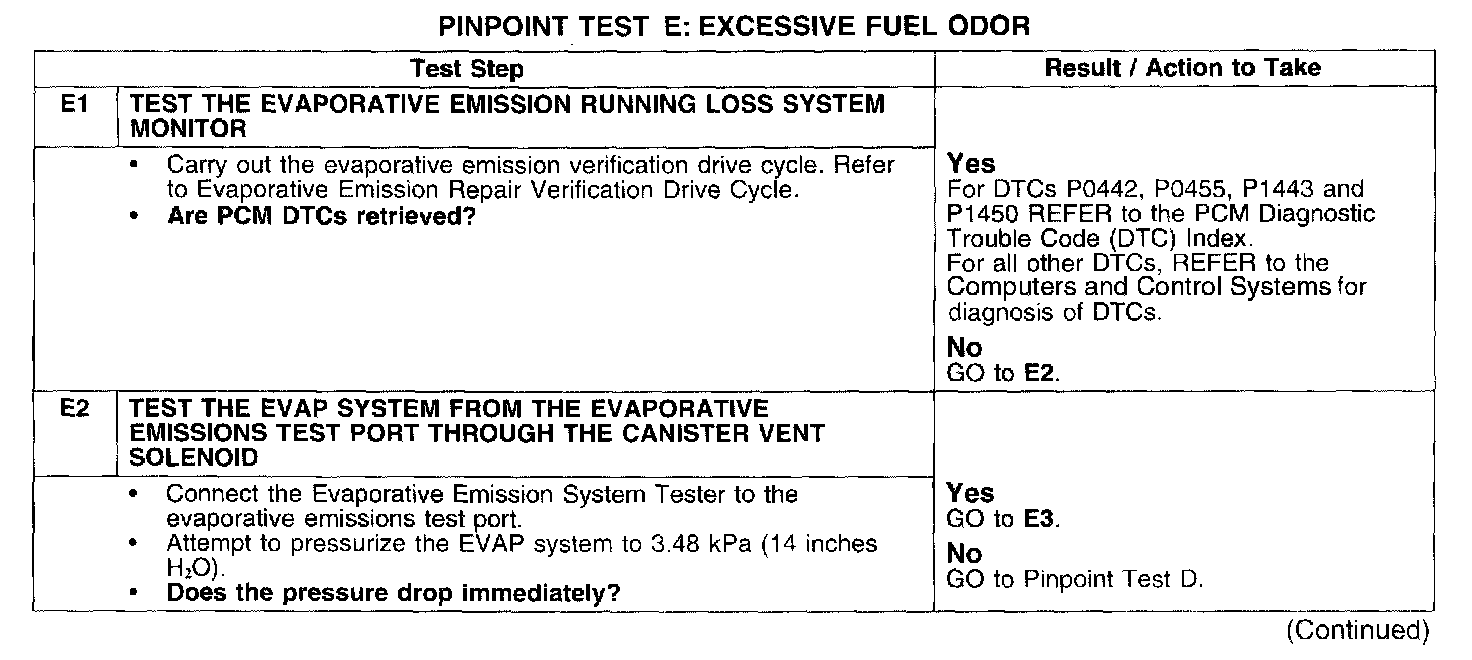 PINPOINT TEST E: EXCESSIVE FUEL ODOR