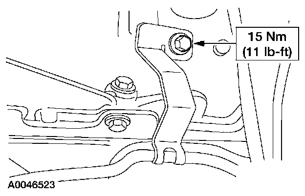 8. Remove the bolt retaining the line routing bracket to the engine and remove the transmission fluid cooler tube(s).
