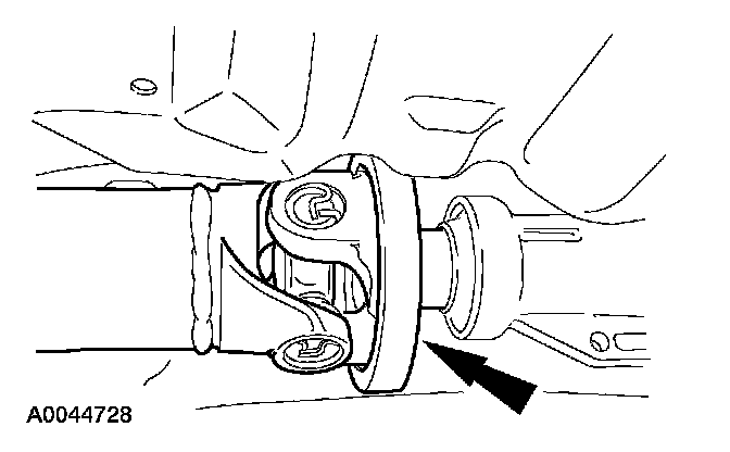 6. NOTE: To maintain the initial driveshaft balance, mark the rear driveshaft yoke and the axle pinion flange so they can be installed in their original positions.