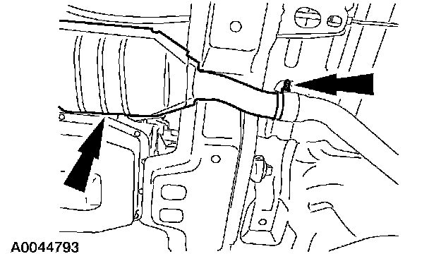 18. Loosen the exhaust clamp and remove the LH exhaust pipe.