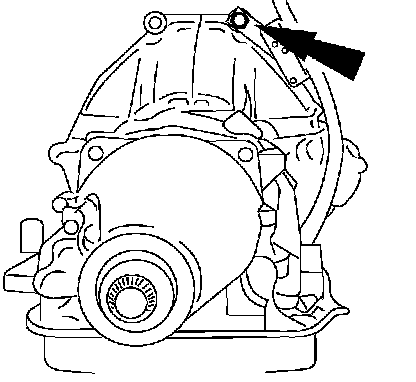 8. Remove the torque converter access cover plug at the left rear engine block.