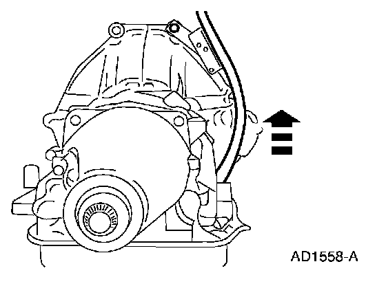 27. Position a suitable jack under the transmission. Secure the transmission to the jack with safety straps.