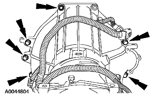 Remove and discard the four torque converter-to-flexplate nuts.