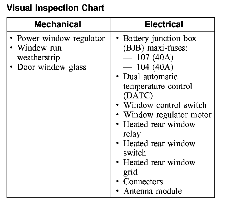 INSPECTION AND VERIFICATION1. Verify the customer concern by operating the power windows/heated rear window to duplicate the concern.