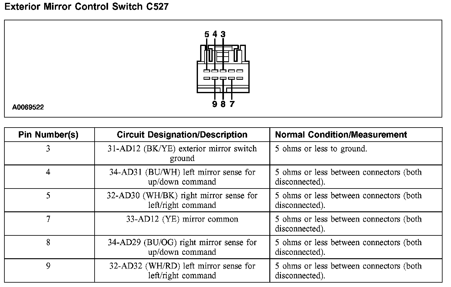 Exterior Mirror Control Switch C527: