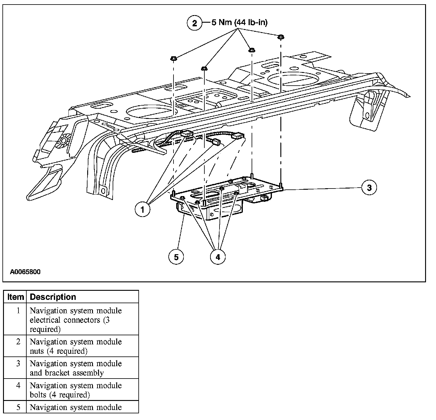 5. Remove the 4 nuts and the navigation system module and bracket assembly.