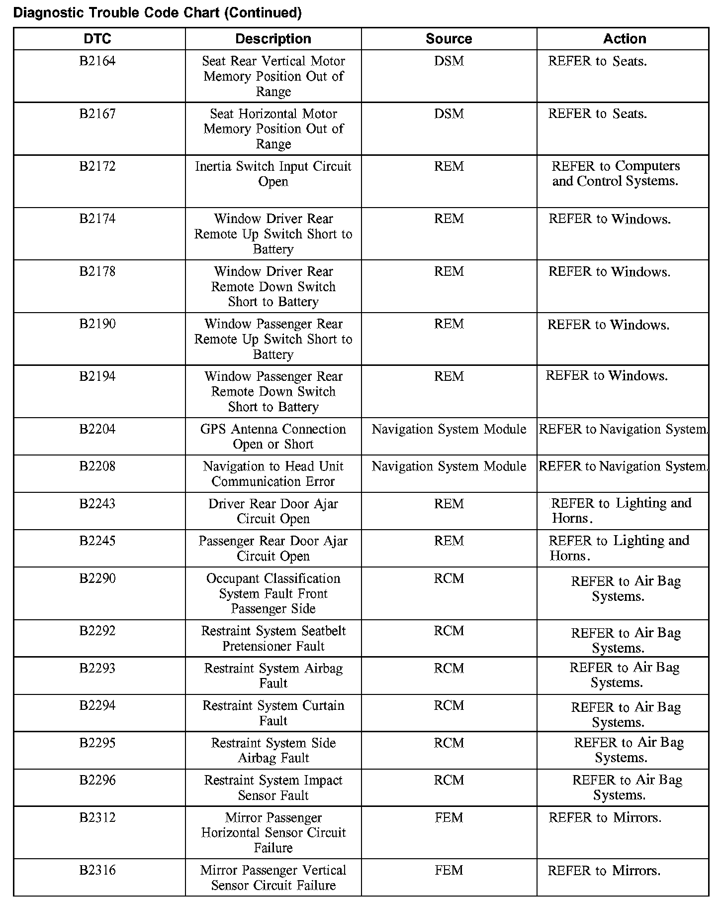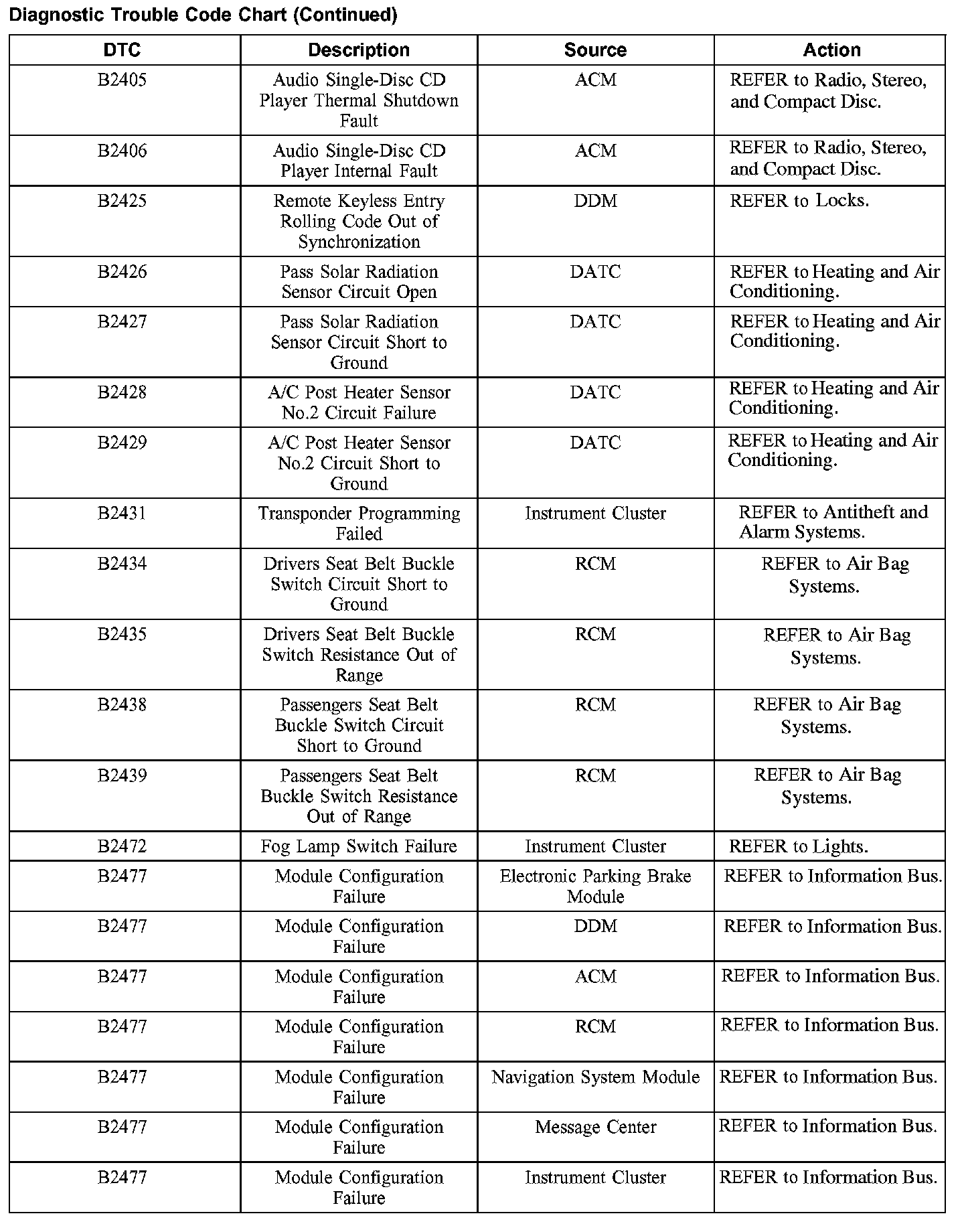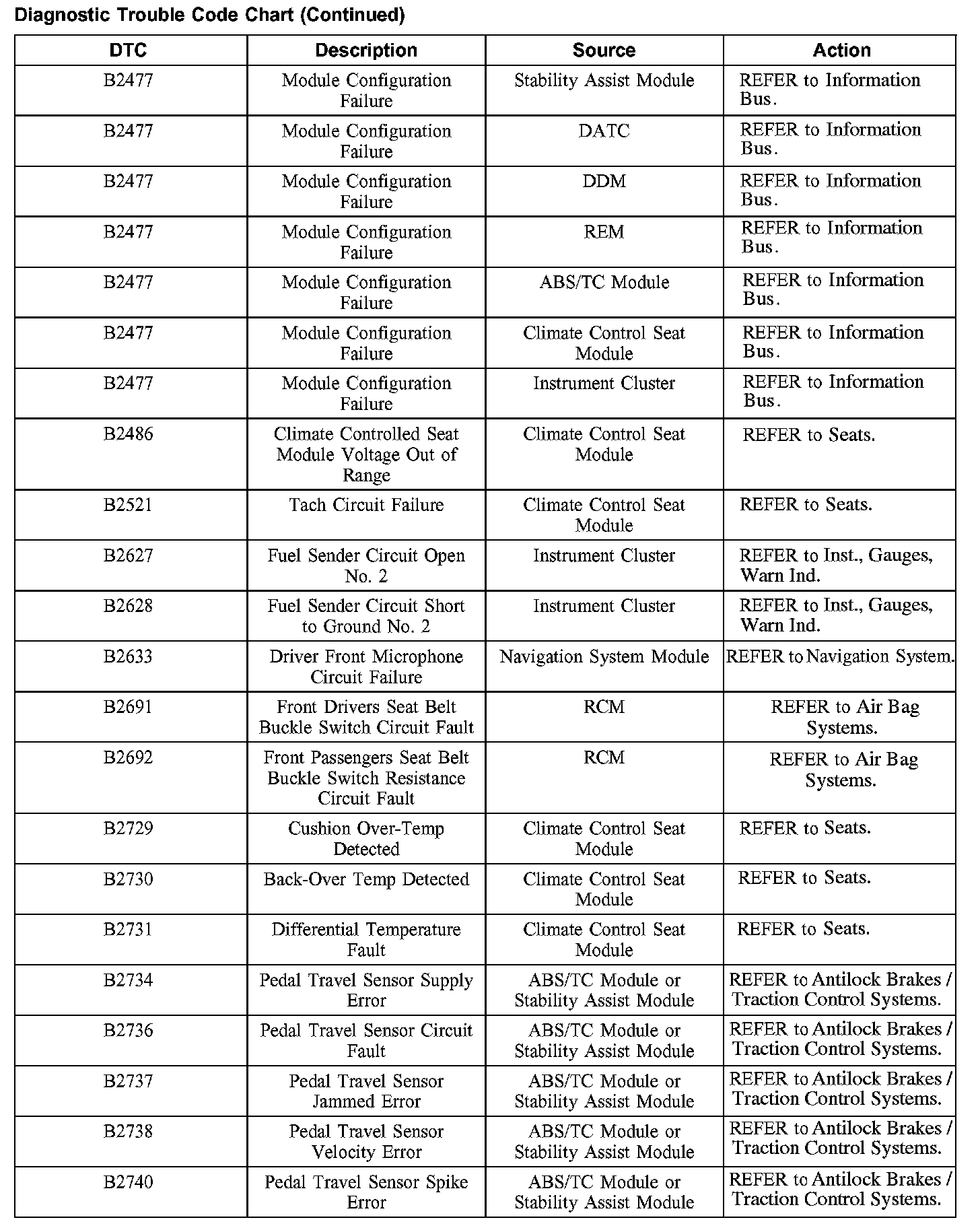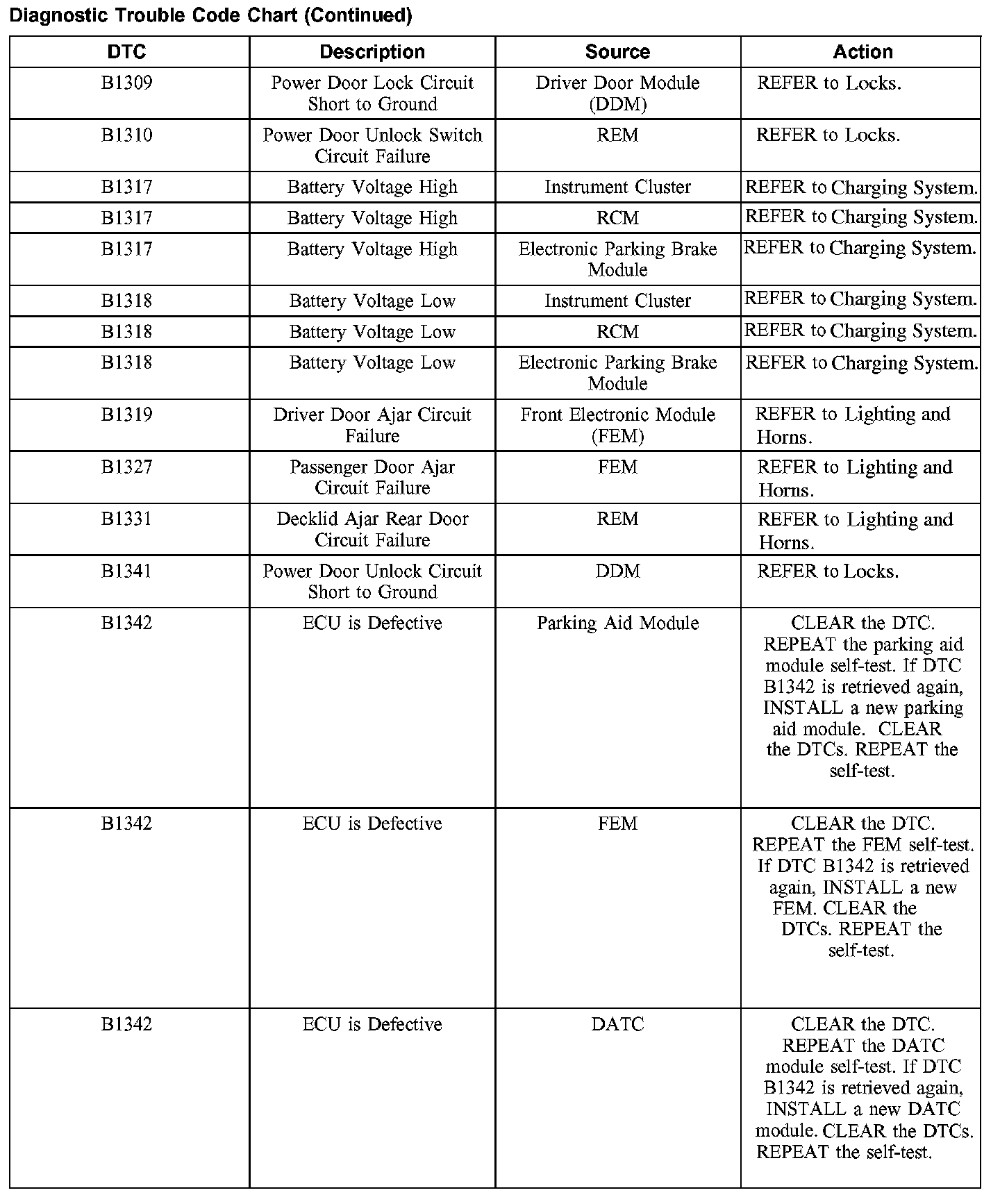 DIAGNOSTIC TROUBLE CODE CHARTB1201-B1300: