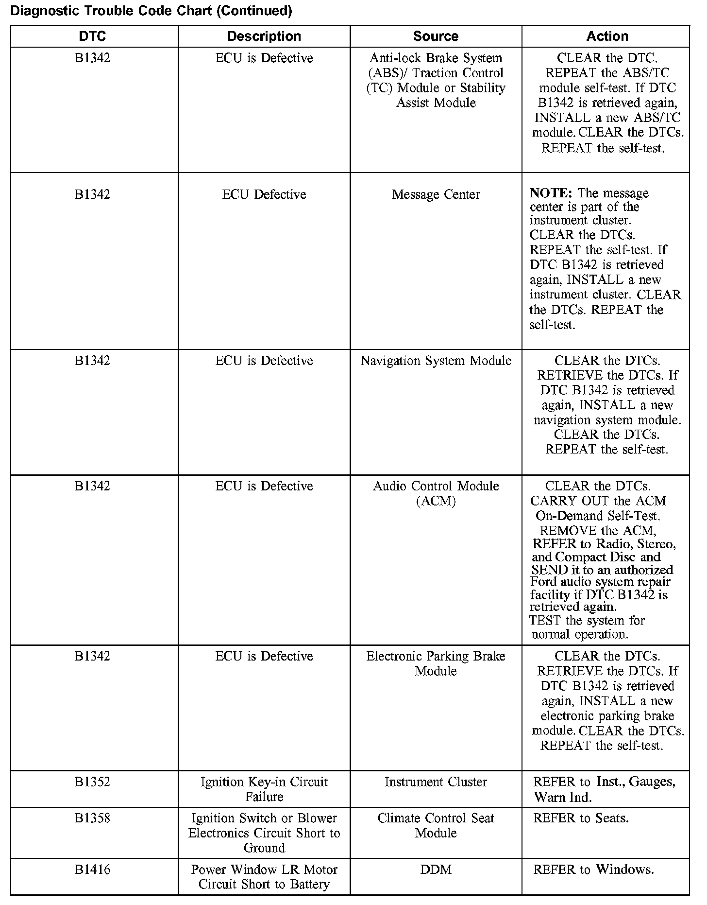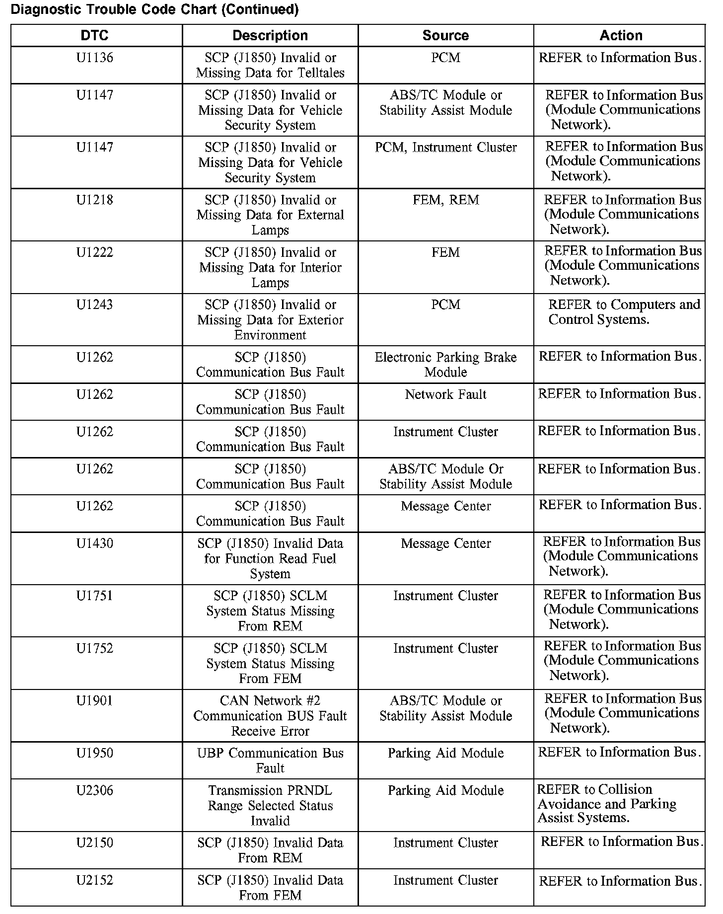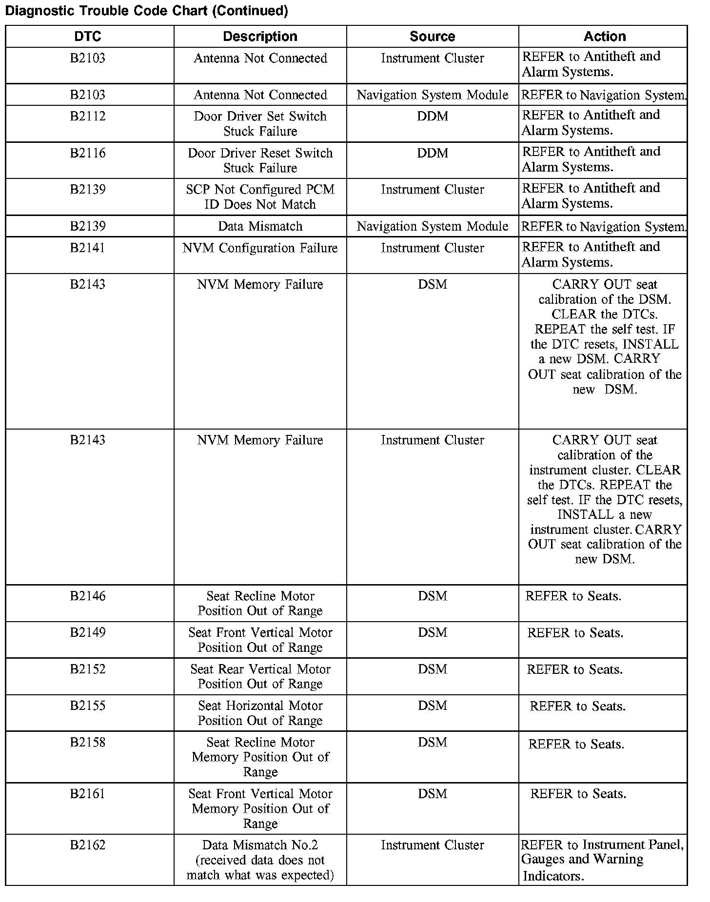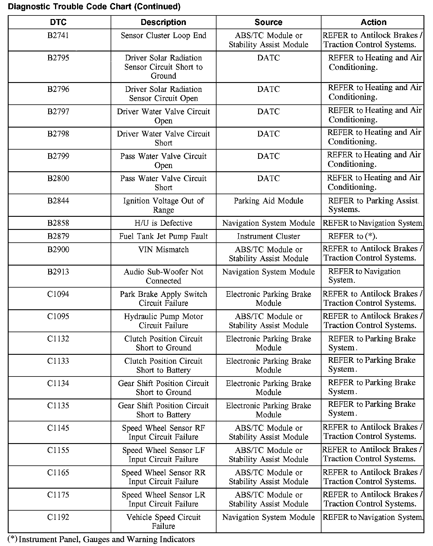 DIAGNOSTIC TROUBLE CODE CHARTB1201-B1300: