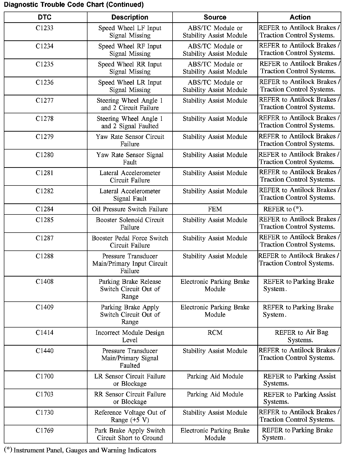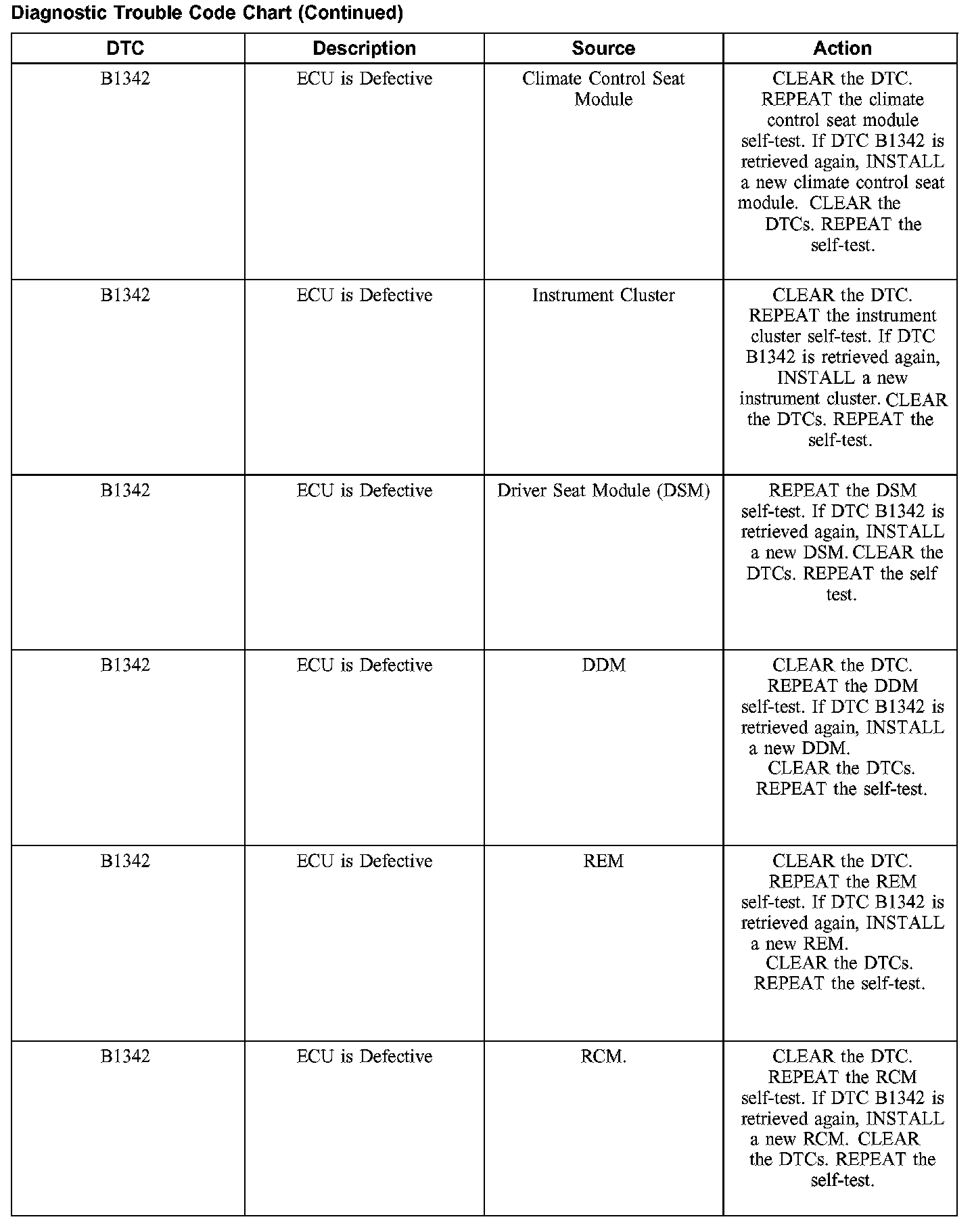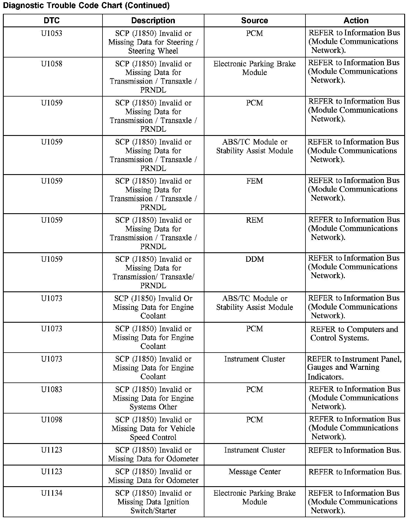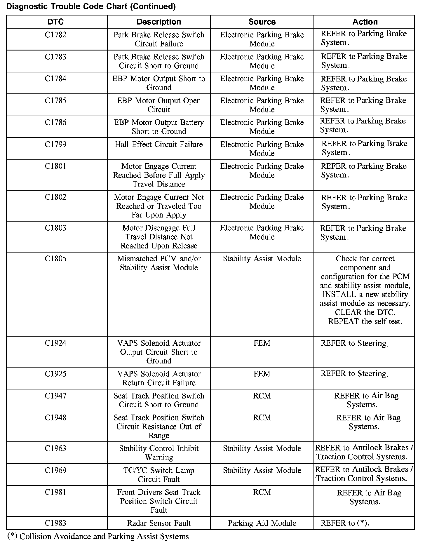 DIAGNOSTIC TROUBLE CODE CHARTB1201-B1300: