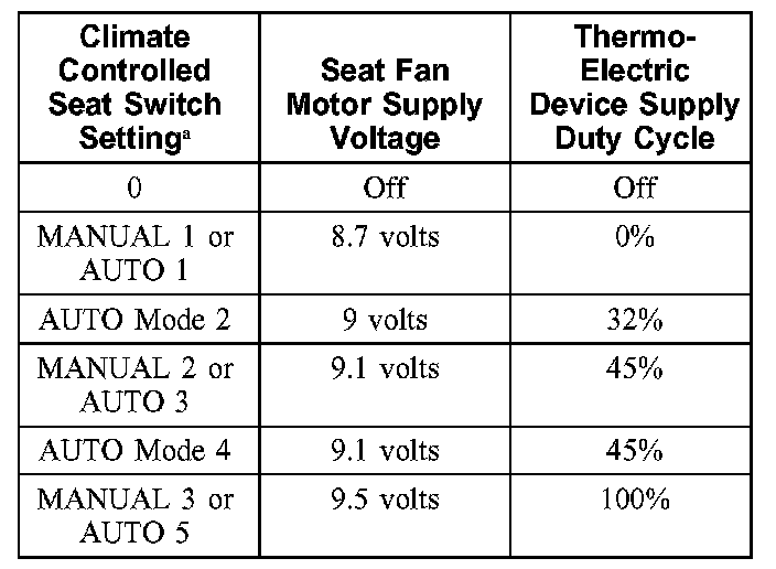 - There are 3 manual settings based on the position of the climate controlled seat switch on the DATC module. Position 1 is the LOW setting and position 3 is the HIGH setting.