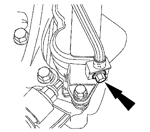2. Remove the brake caliper flow bolt and discard the 2 copper washers.