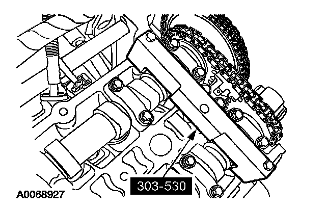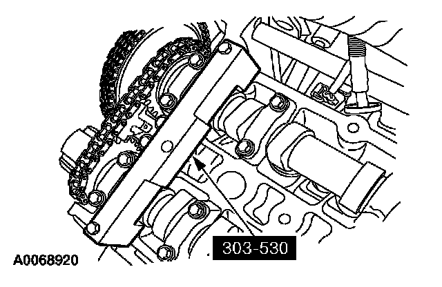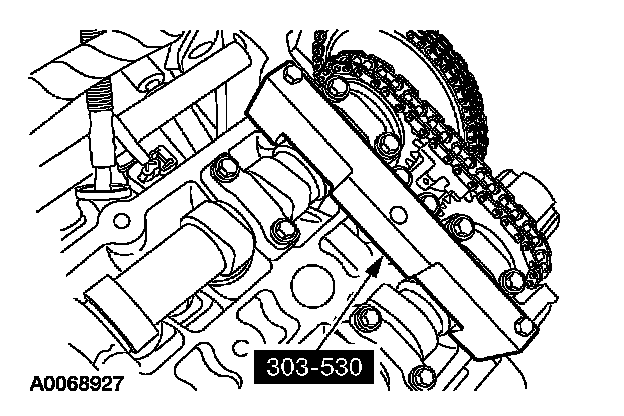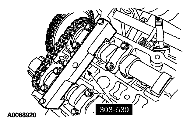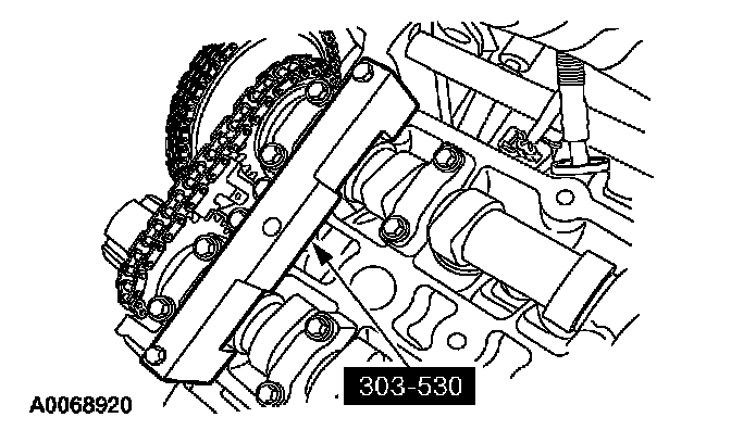 10. CAUTION: The camshaft holding tool should still be installed on the LH cylinder head. If the special tool was removed during camshaft removal, it must be reinstalled at this time.
