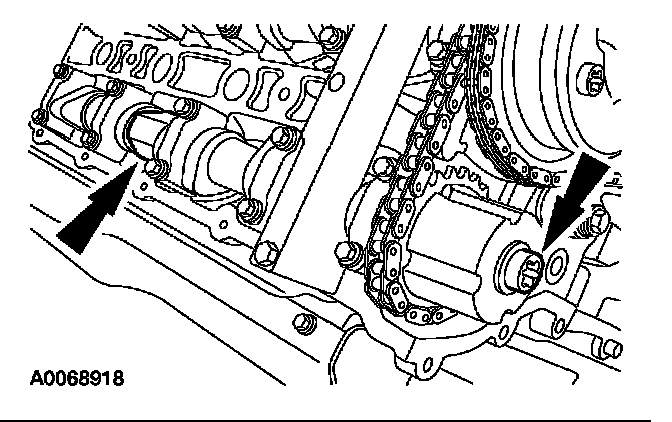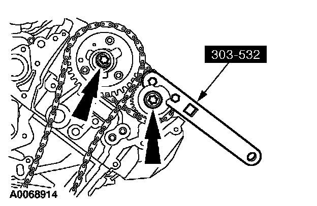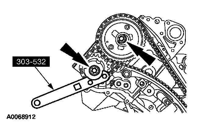 CAUTION: Using the special tool, apply 10 Nm (89 inch lbs.) counterclockwise to the RH exhaust camshaft sprocket.