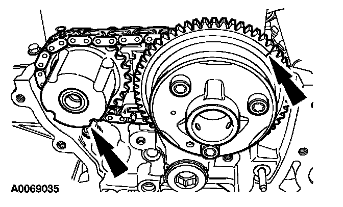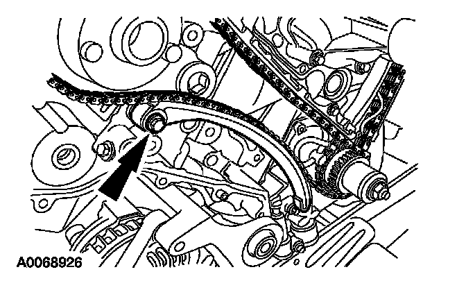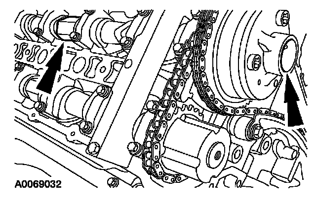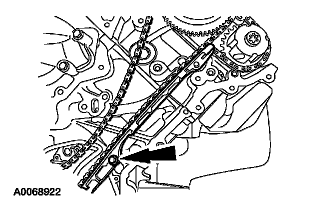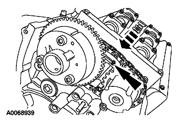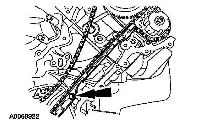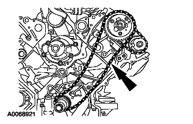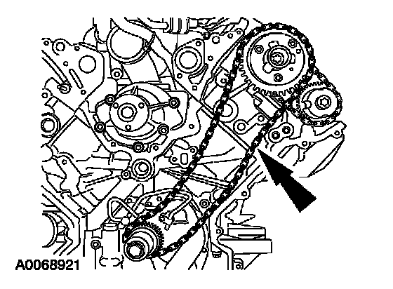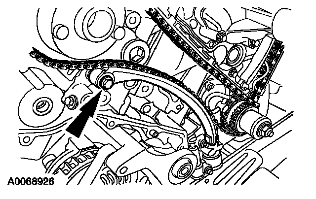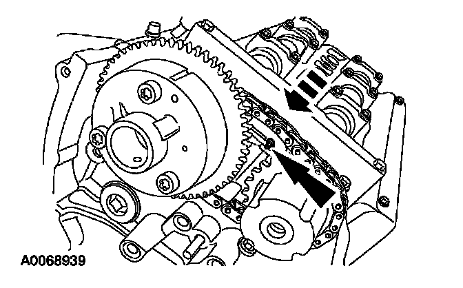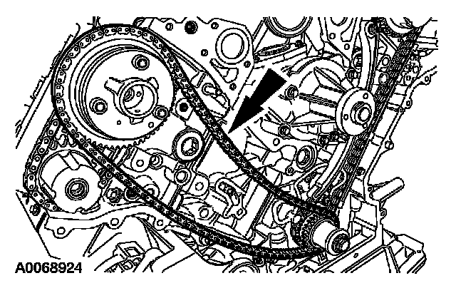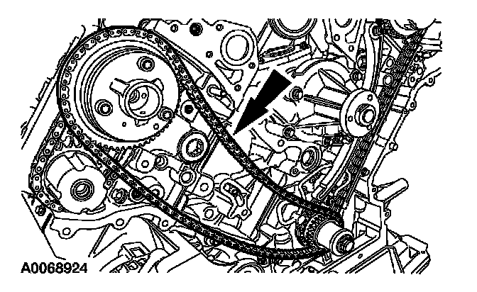 ^ Position the timing chain over the LH intake camshaft sprocket.