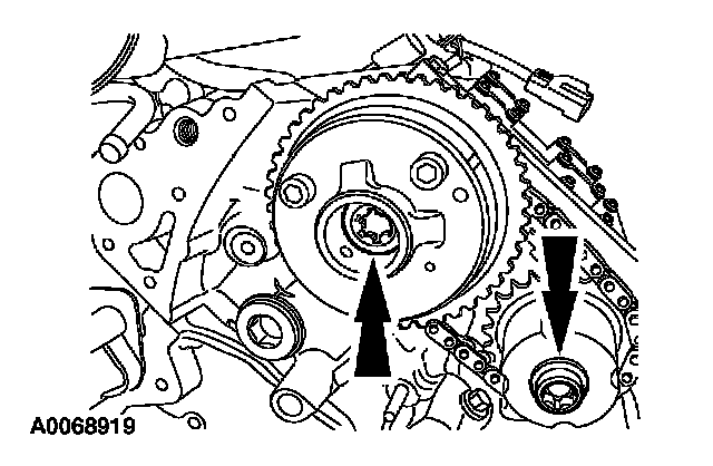 15. CAUTION: The exhaust camshaft sprocket bolt must be fully tightened before tightening the intake camshaft sprocket bolt.