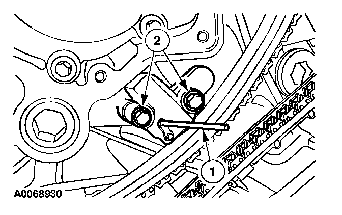 4. Remove the locking pin from the LH secondary timing chain tensioner.
