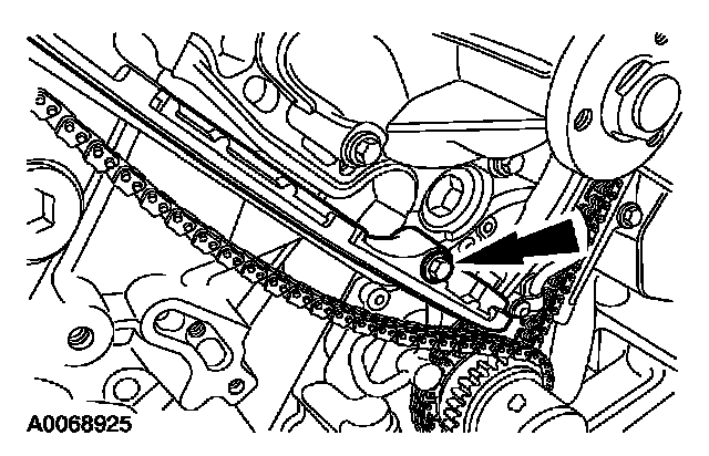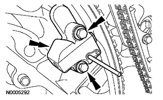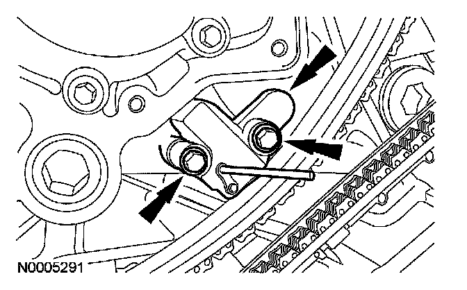 5. Install the RH secondary timing chain tensioner and 2 bolts.