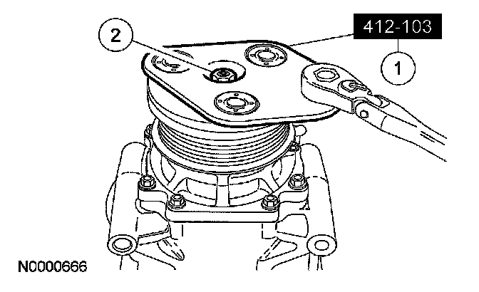 5. CAUTION: Do not use air tools. Damage to the A/C compressor pulley may result.