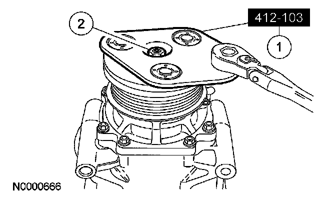 6. NOTE: The A/C compressor pulley is a tight fit on the A/C compressor. It must be correctly aligned during installation.