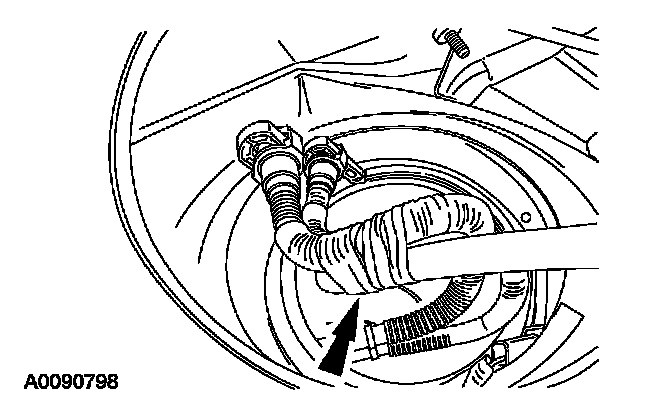 Before removal, attach a non-conductive material to the crossover tubes. Then remove the fuel pump module and crossover tubes as an assembly, using the non-conductive material to pull the crossover lines through the gas tank.