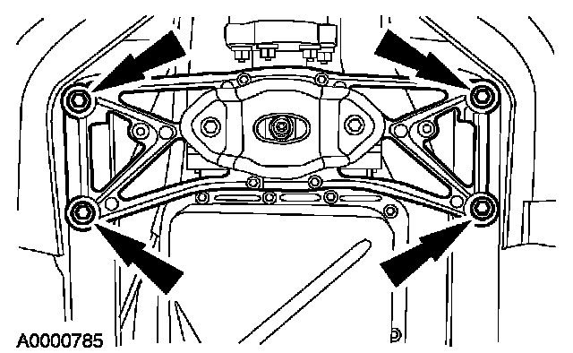 Using a suitable transmission jack, support the transmission.