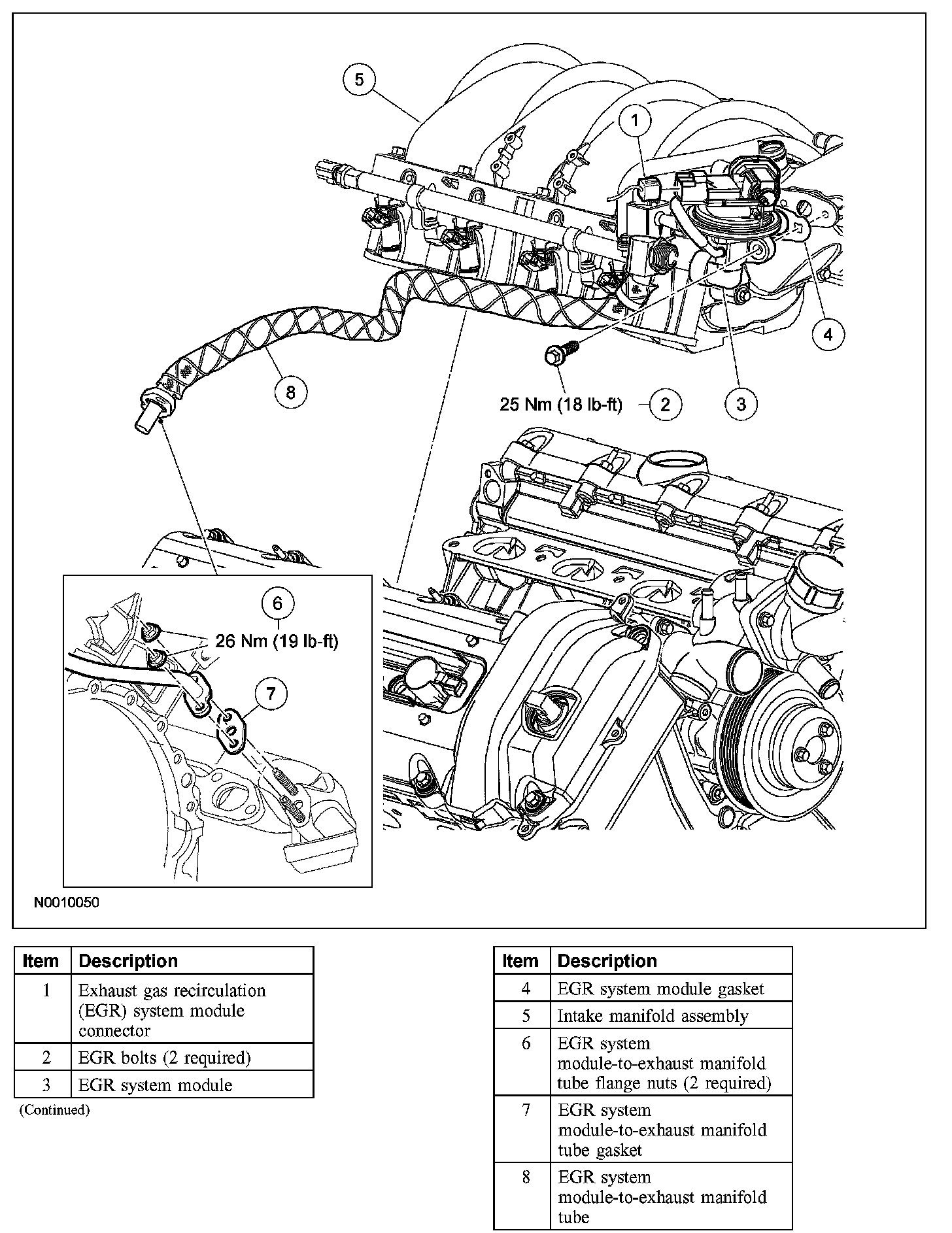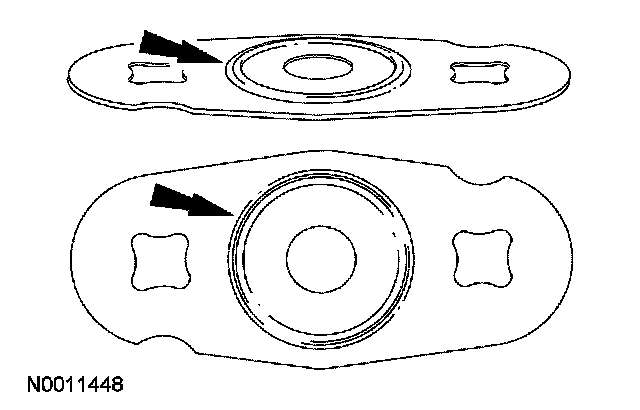 - Install a new EGR system module gasket with the side with the raised circle facing the intake manifold.