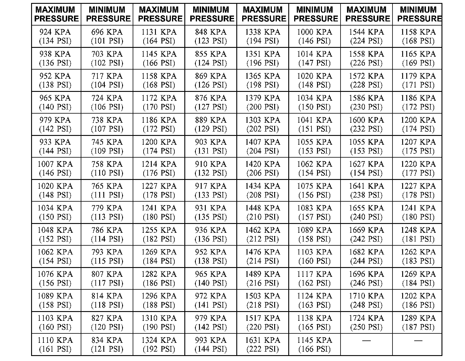 COMPRESSION PRESSURE LIMIT CHART