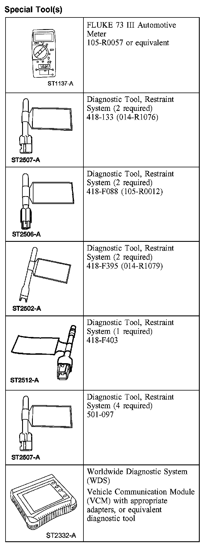 RESTRAINT SYSTEM DIAGNOSTIC TOOL WARNINGSpecial Tool(S):