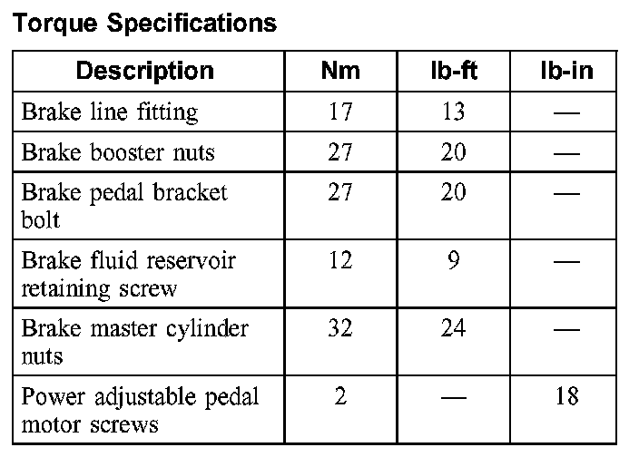 Torque Specifications: