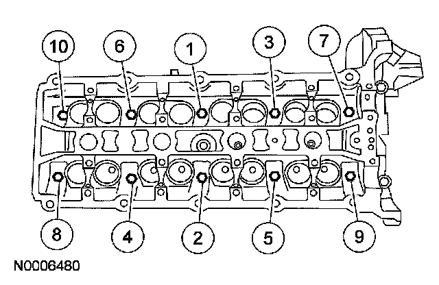 Install and tighten the LH head bolts in 4 stages in the sequence shown.