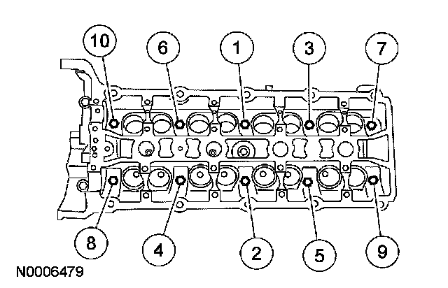 ^ Stage 2: Tighten bolts 1 through 10 to 35 Nm (26 ft. lbs.).