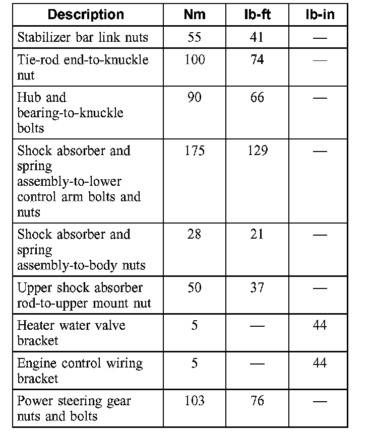 Torque Specifications