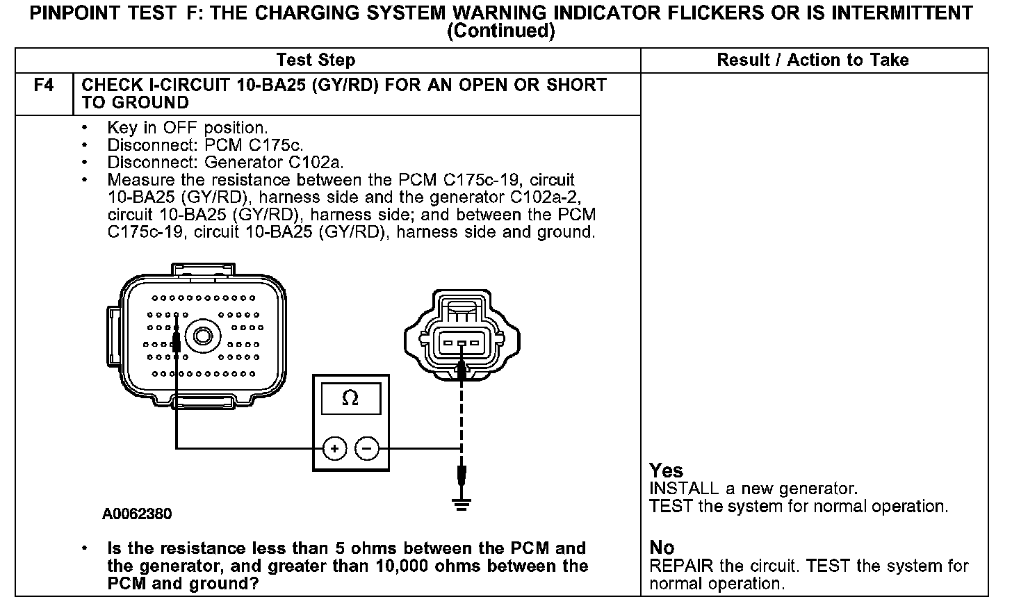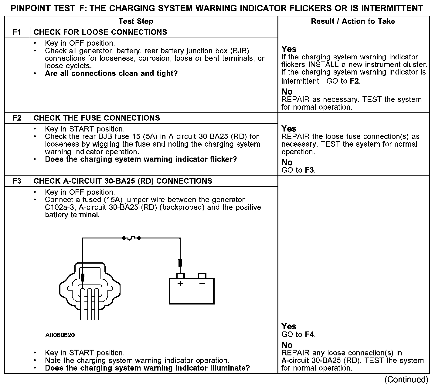 Test F: The Charging System Warning Indicator Flickers or Is Intermittent