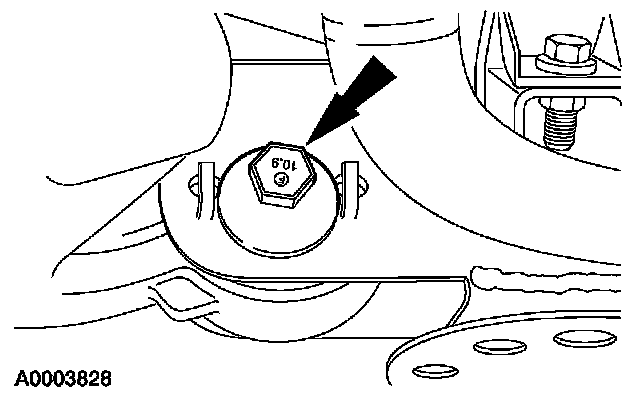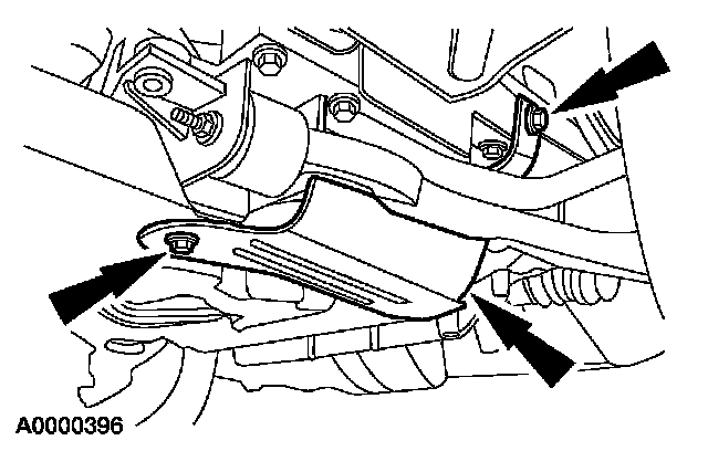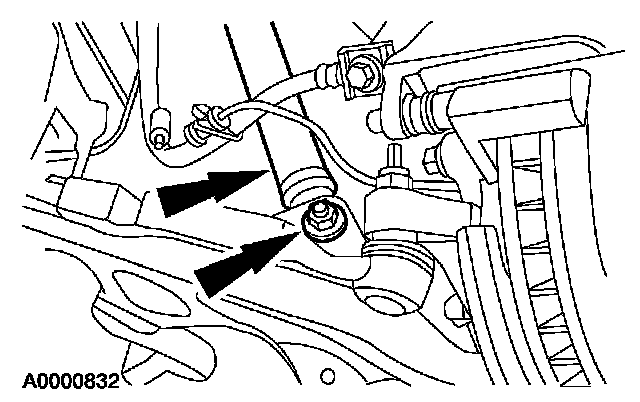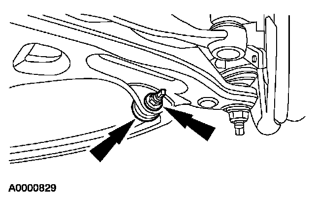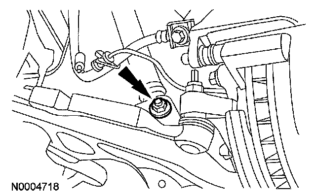 8. Remove and discard the lower control arm rear nut and bolt. Remove the front suspension lower arm.
