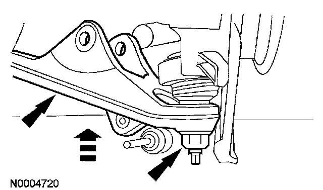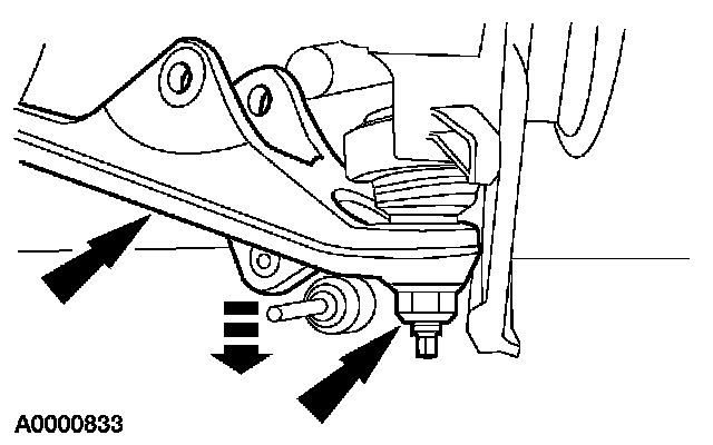 Remove and discard the lower ball joint-to-knuckle nut. Separate the front suspension lower arm from the wheel knuckle.