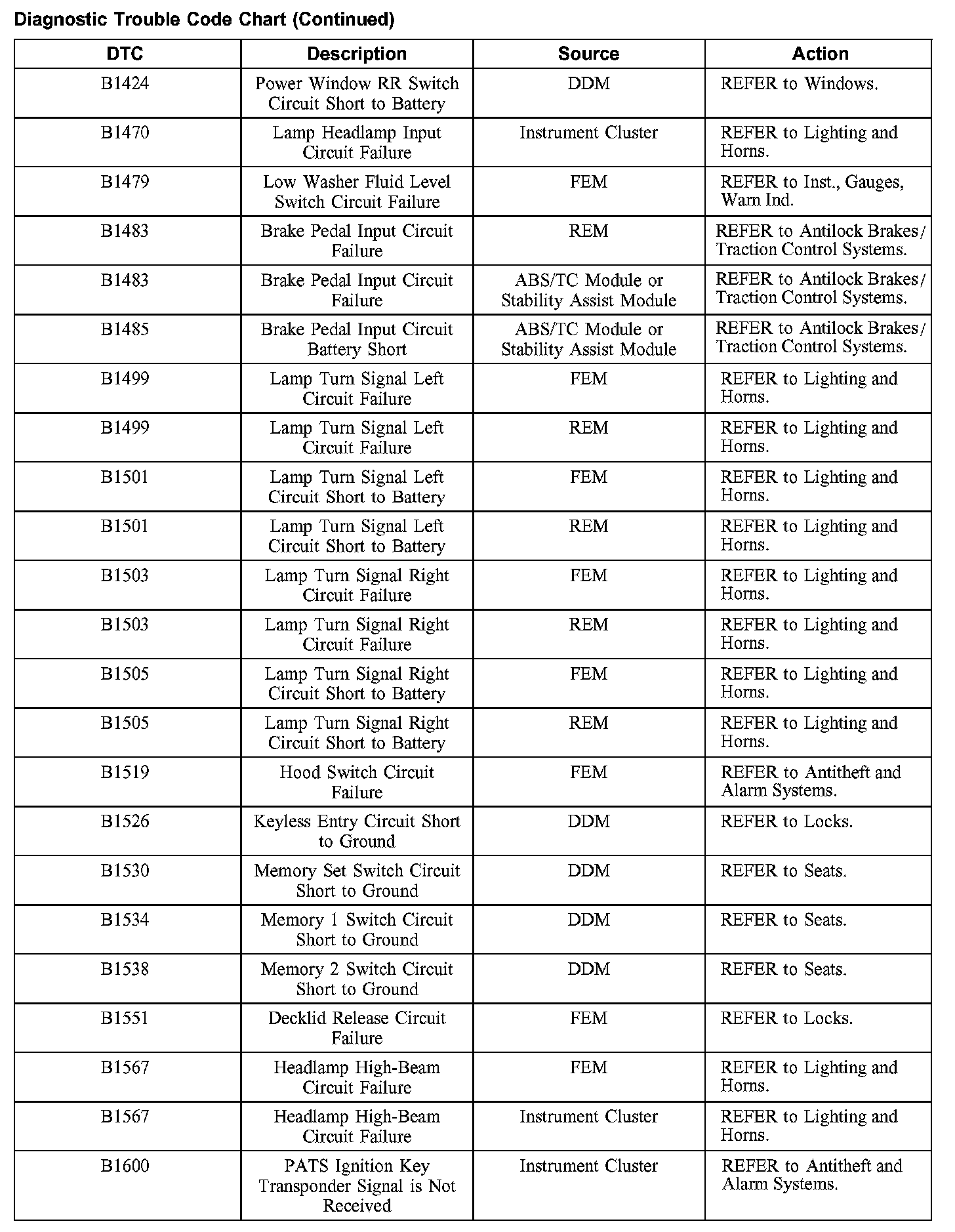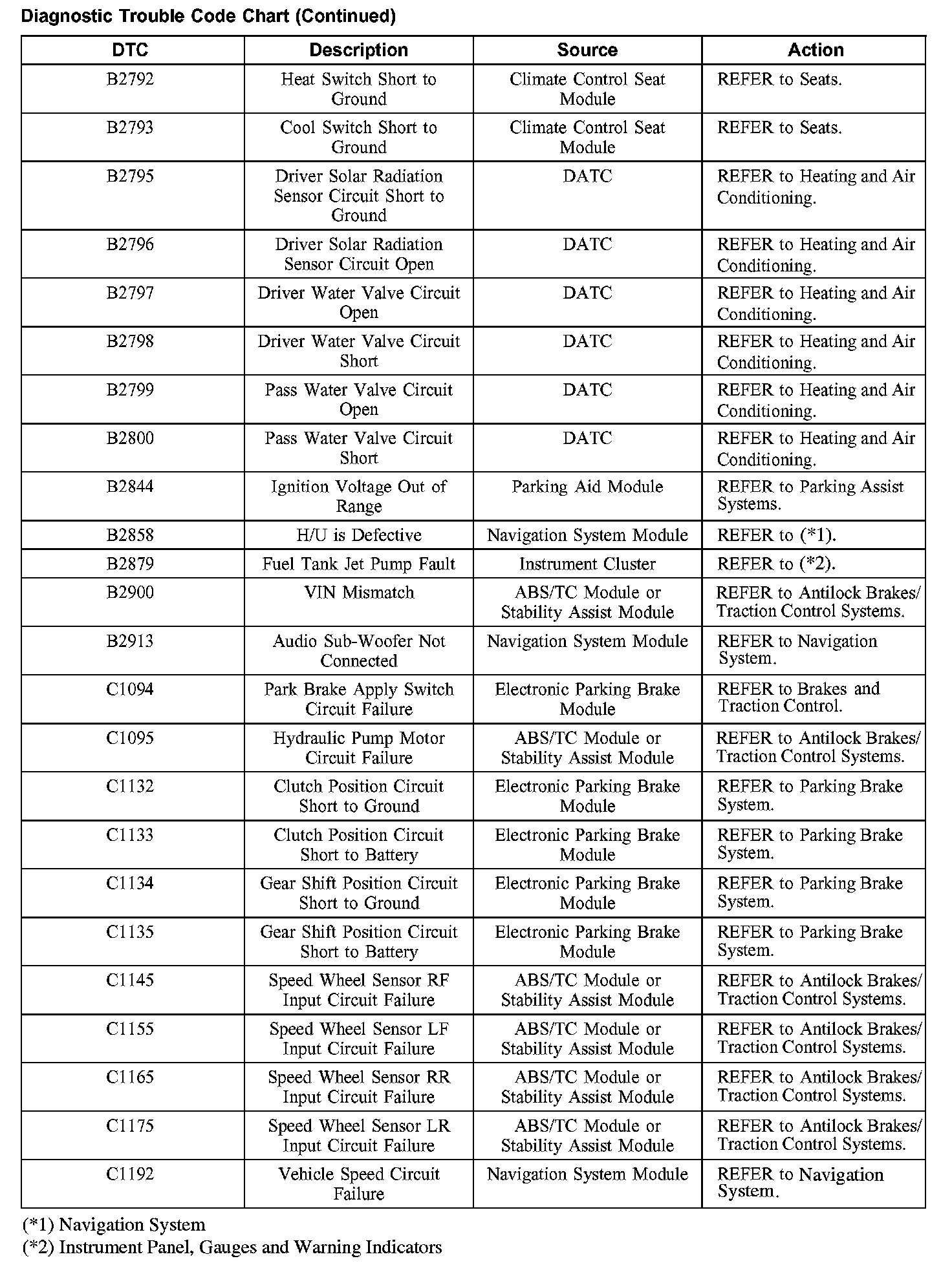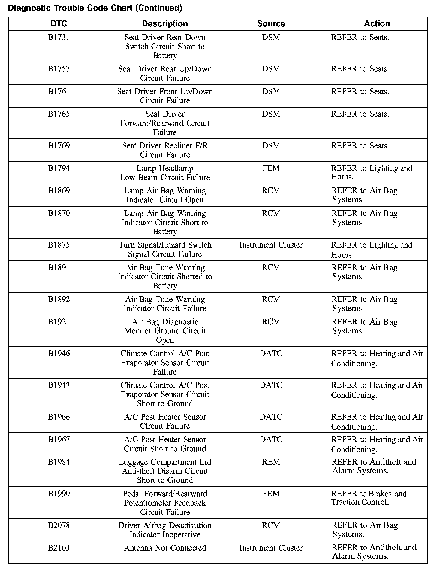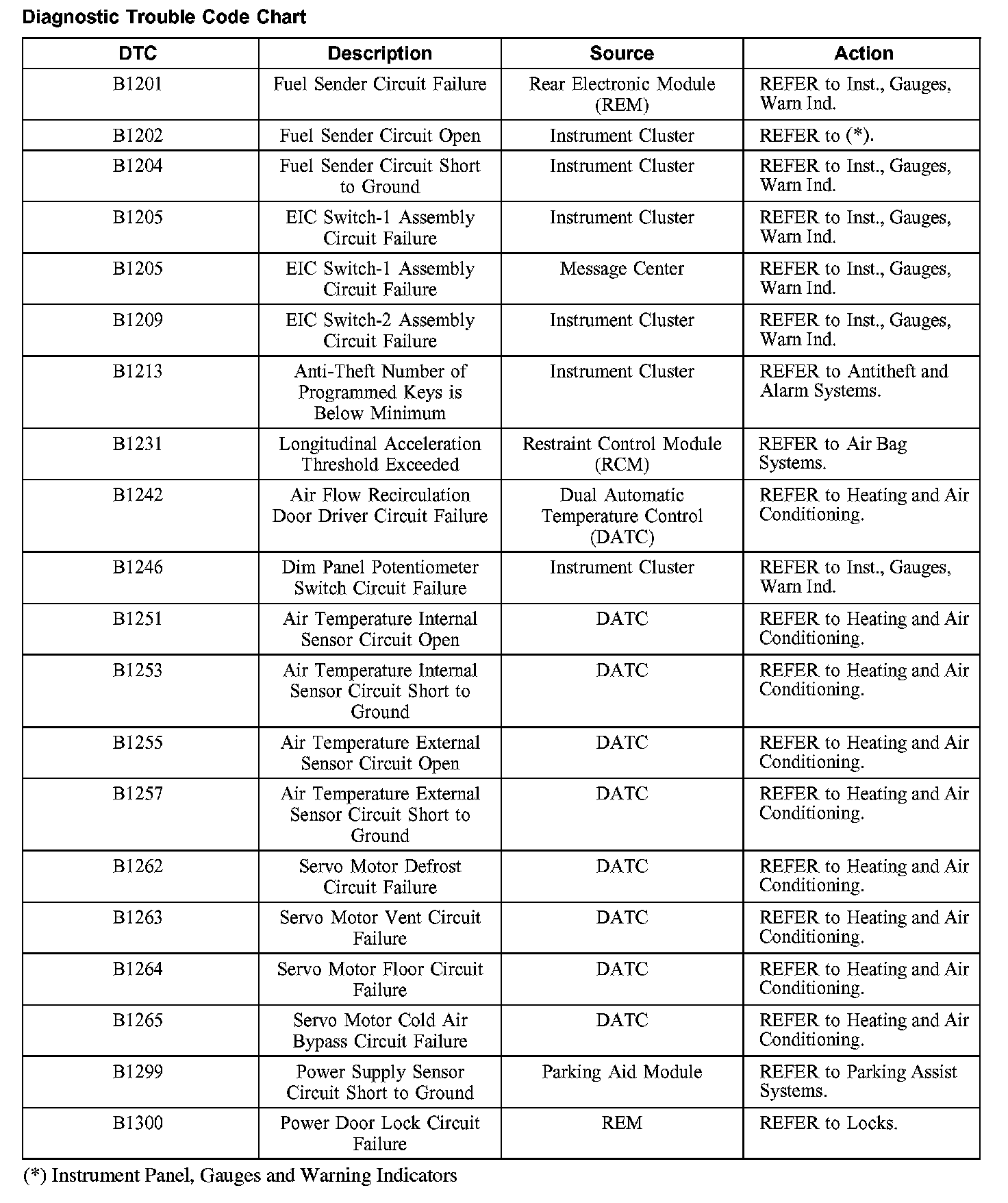 DIAGNOSTIC TROUBLE CODE CHARTB1201-B1300:
