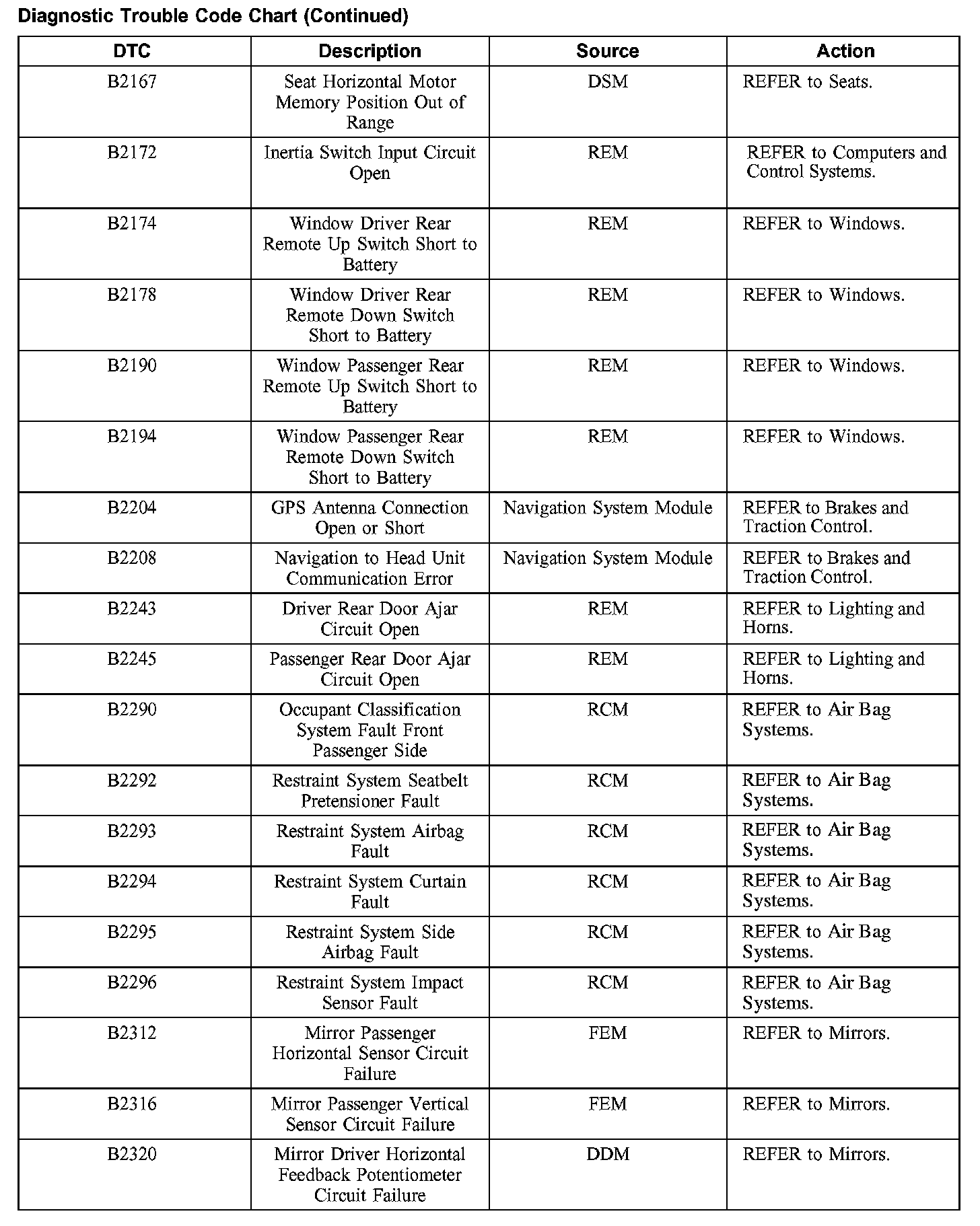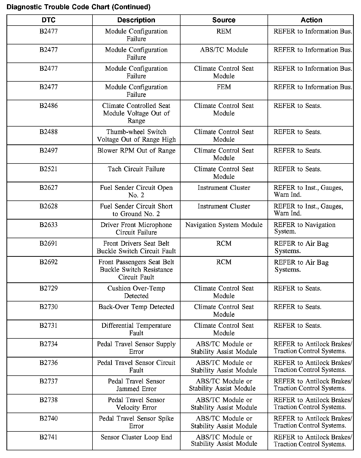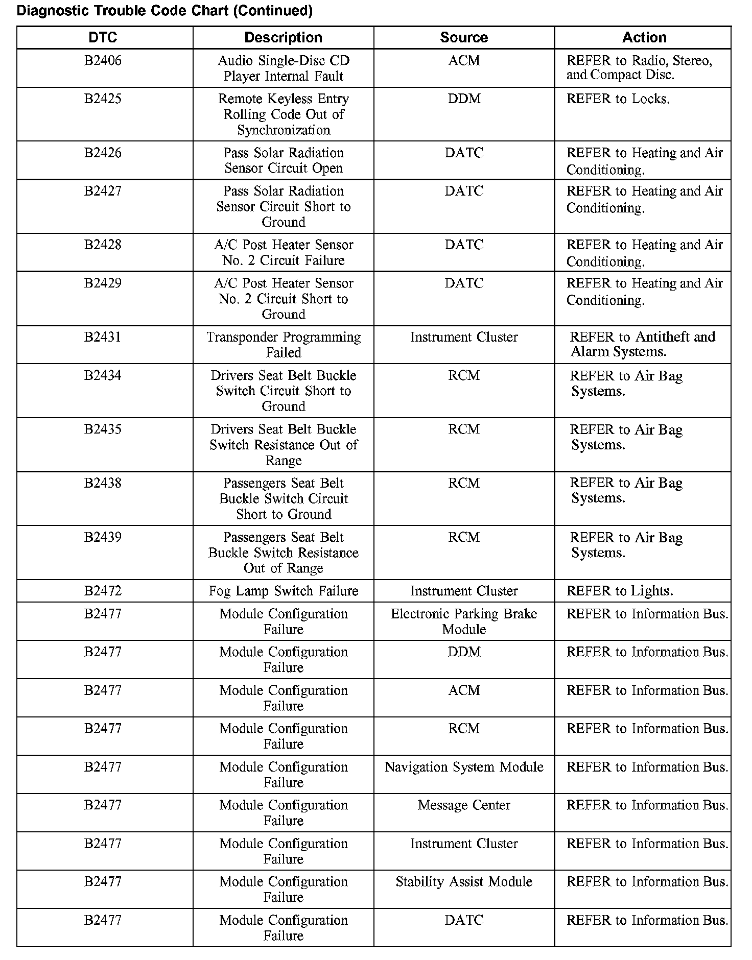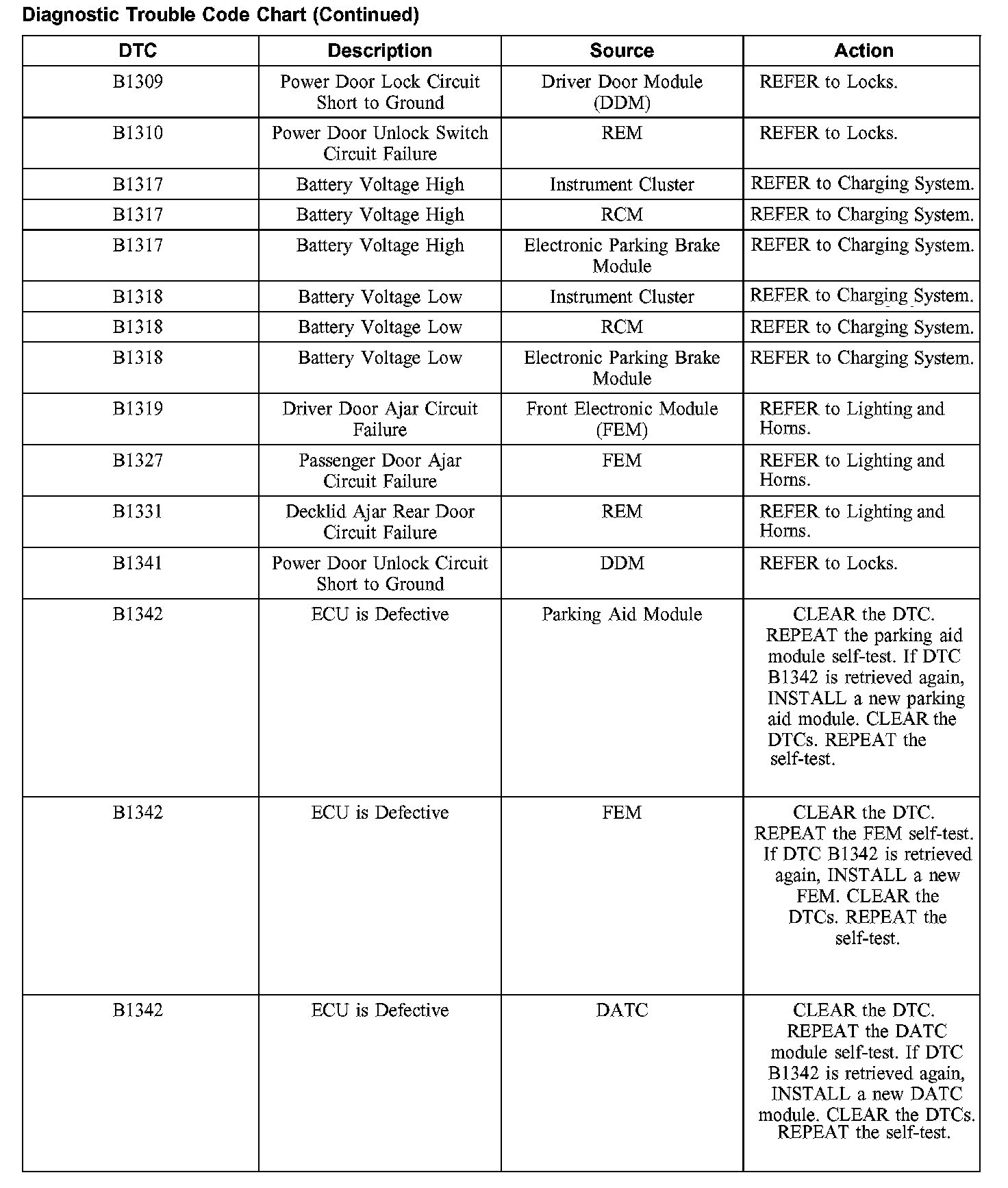 DIAGNOSTIC TROUBLE CODE CHARTB1201-B1300: