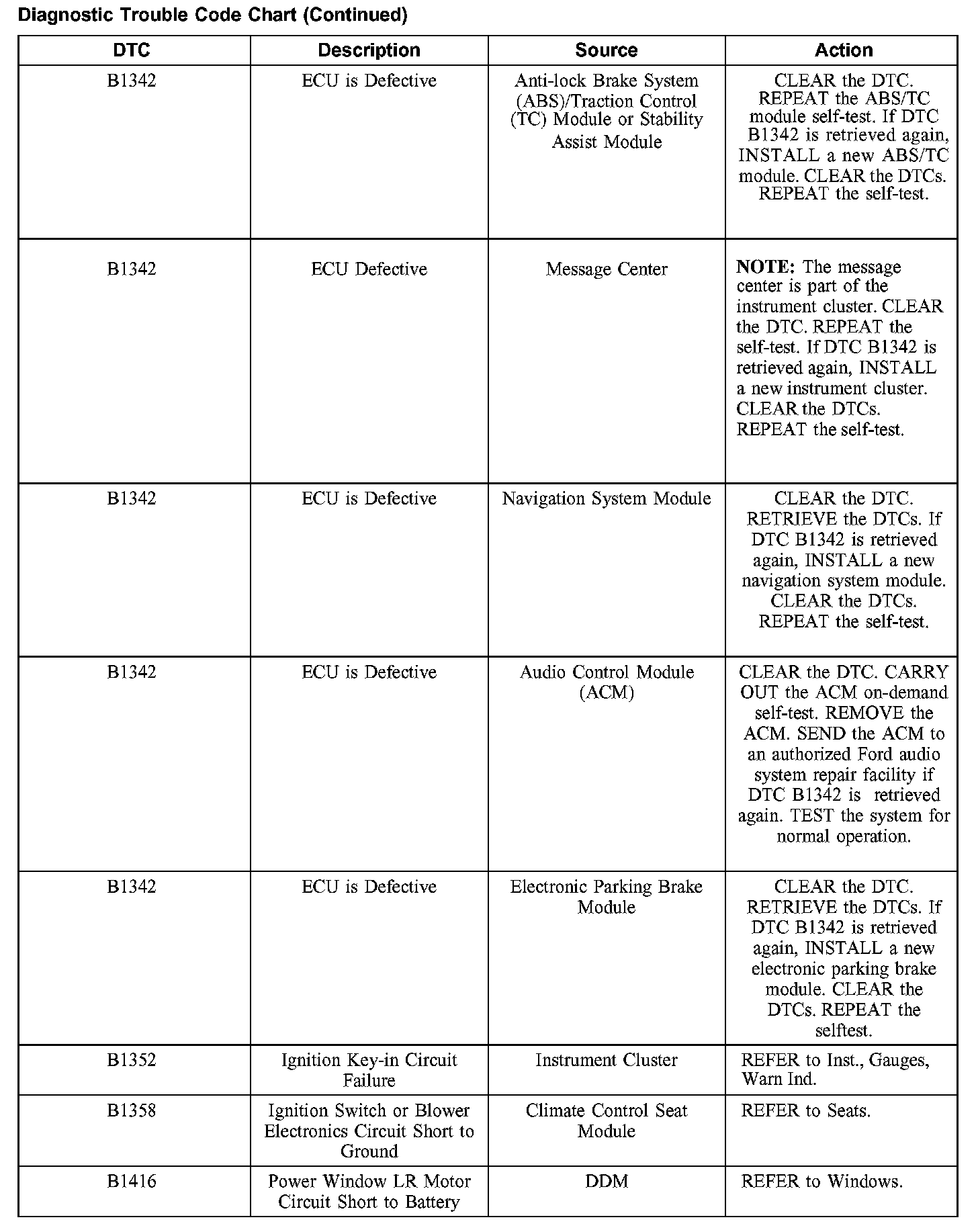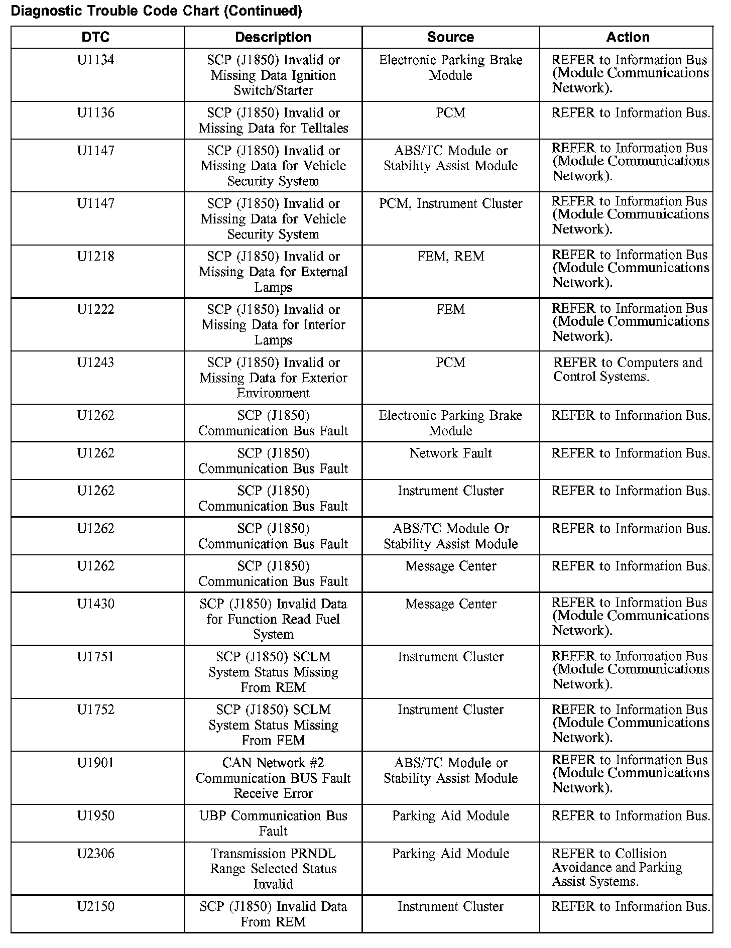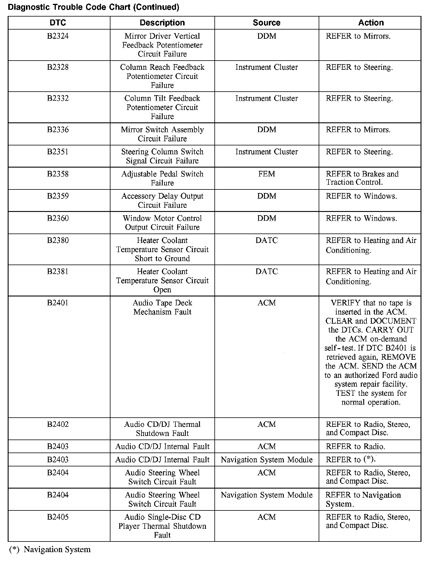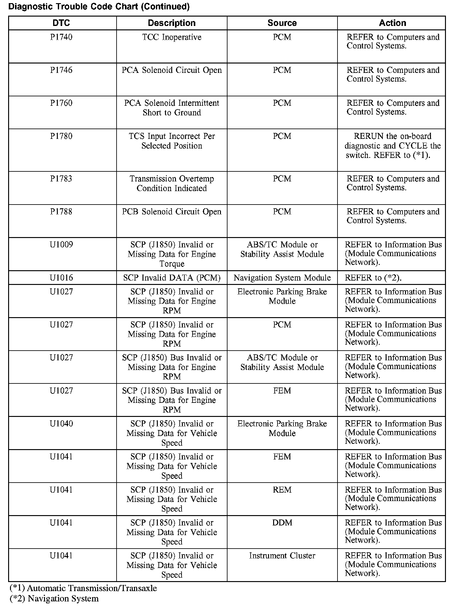 DIAGNOSTIC TROUBLE CODE CHARTB1201-B1300: