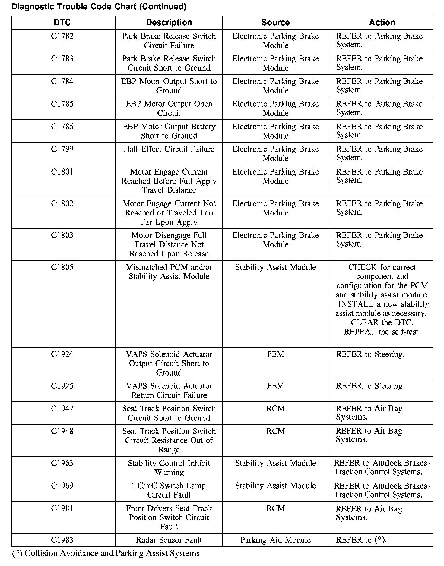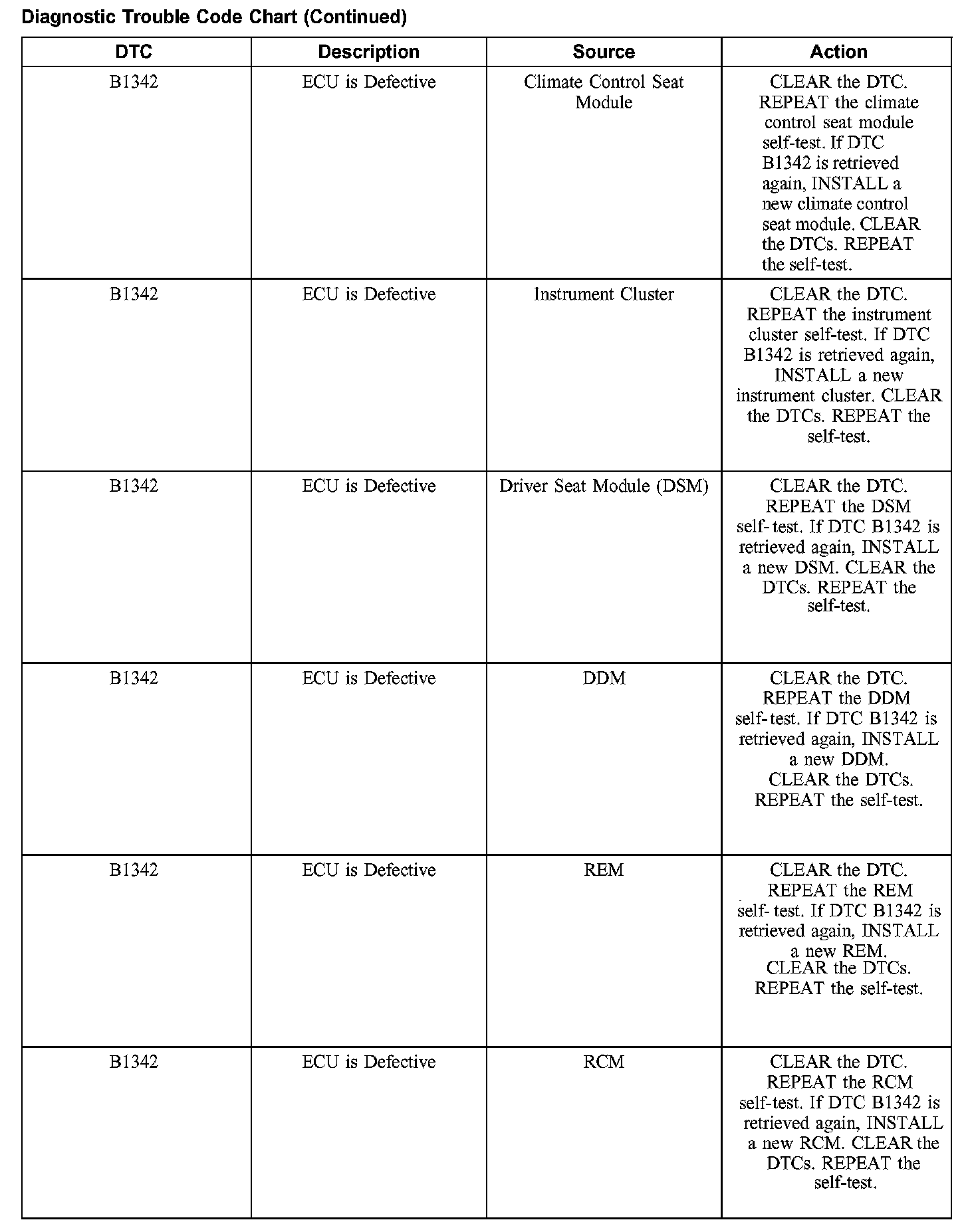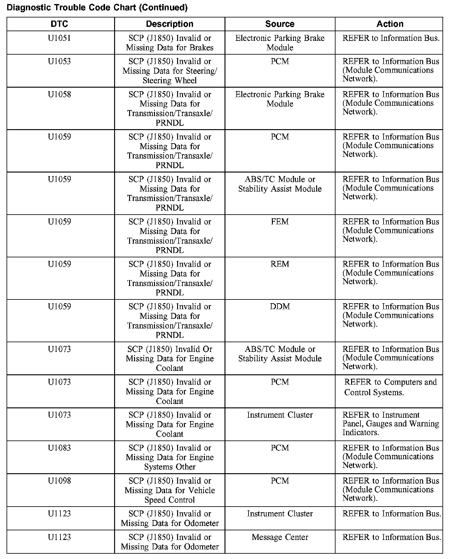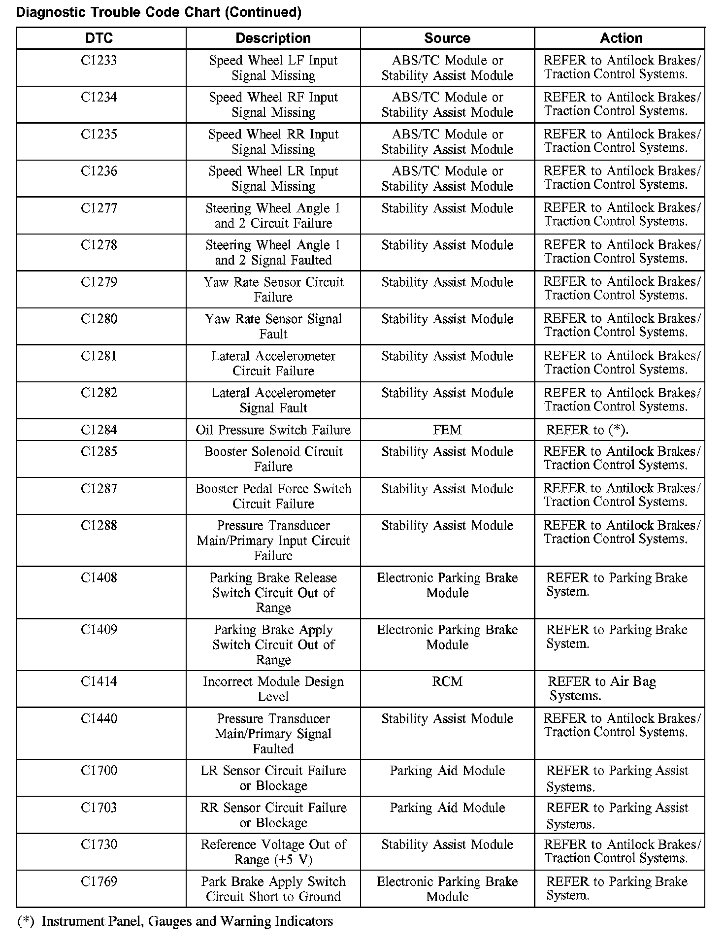 DIAGNOSTIC TROUBLE CODE CHARTB1201-B1300: