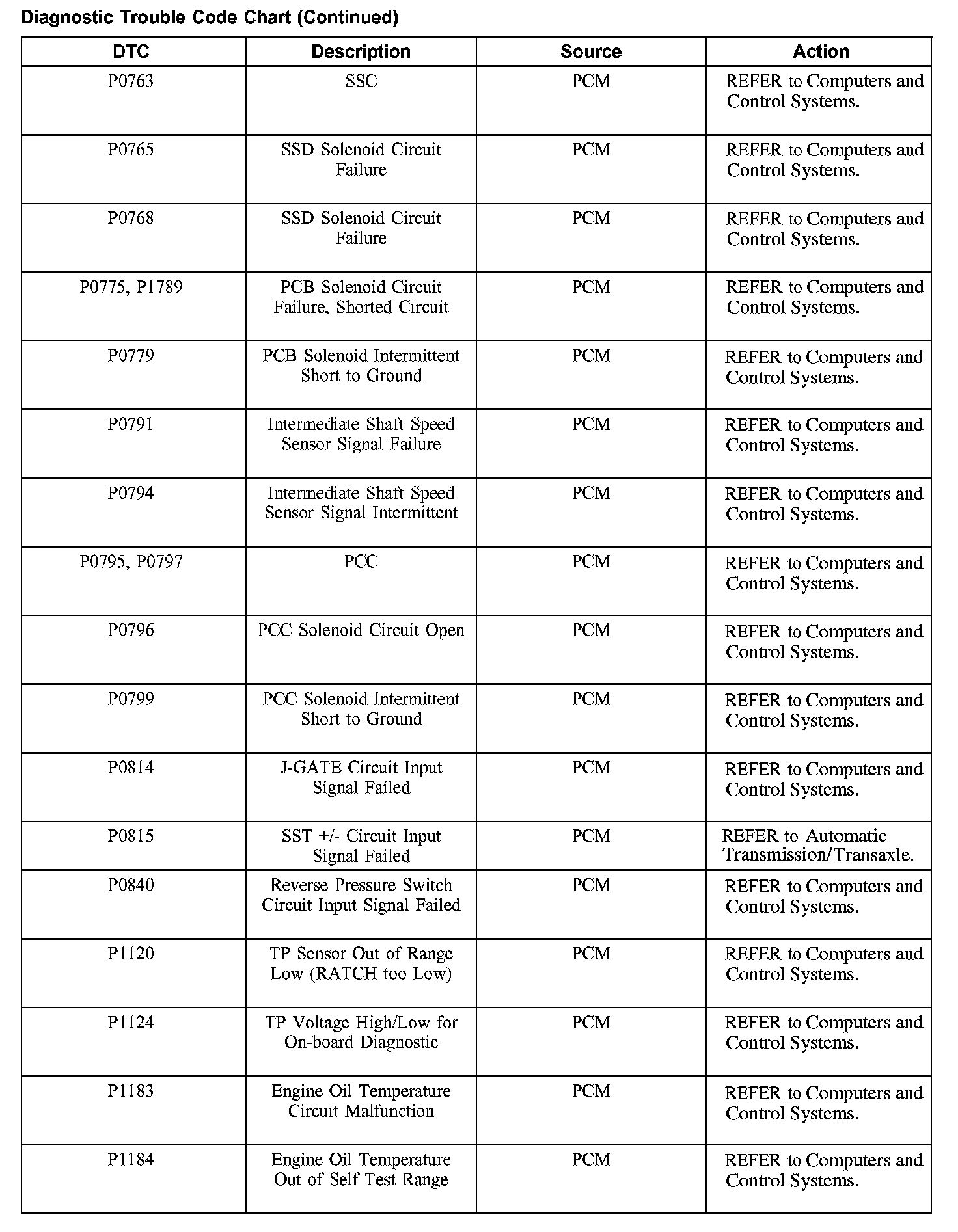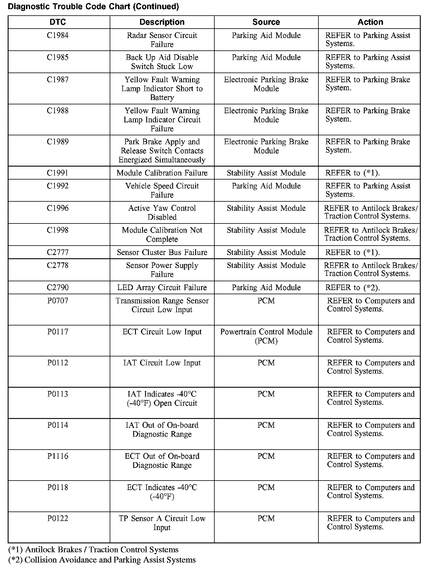 Diagnostic Trouble Code Descriptions