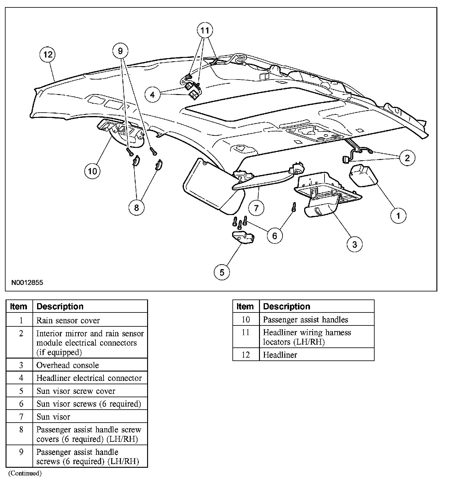 14. Connect the electrical connectors, position the sun visors, and install the 6 screws.
