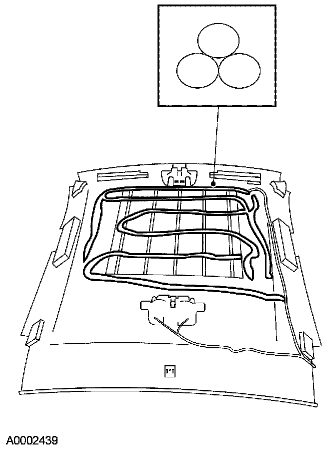 2. NOTE: Adhesive is required for vehicles without a roof opening panel. Adhesive must be applied in two parallel beads with a third bead applied on top to ensure proper contact and adhesion.