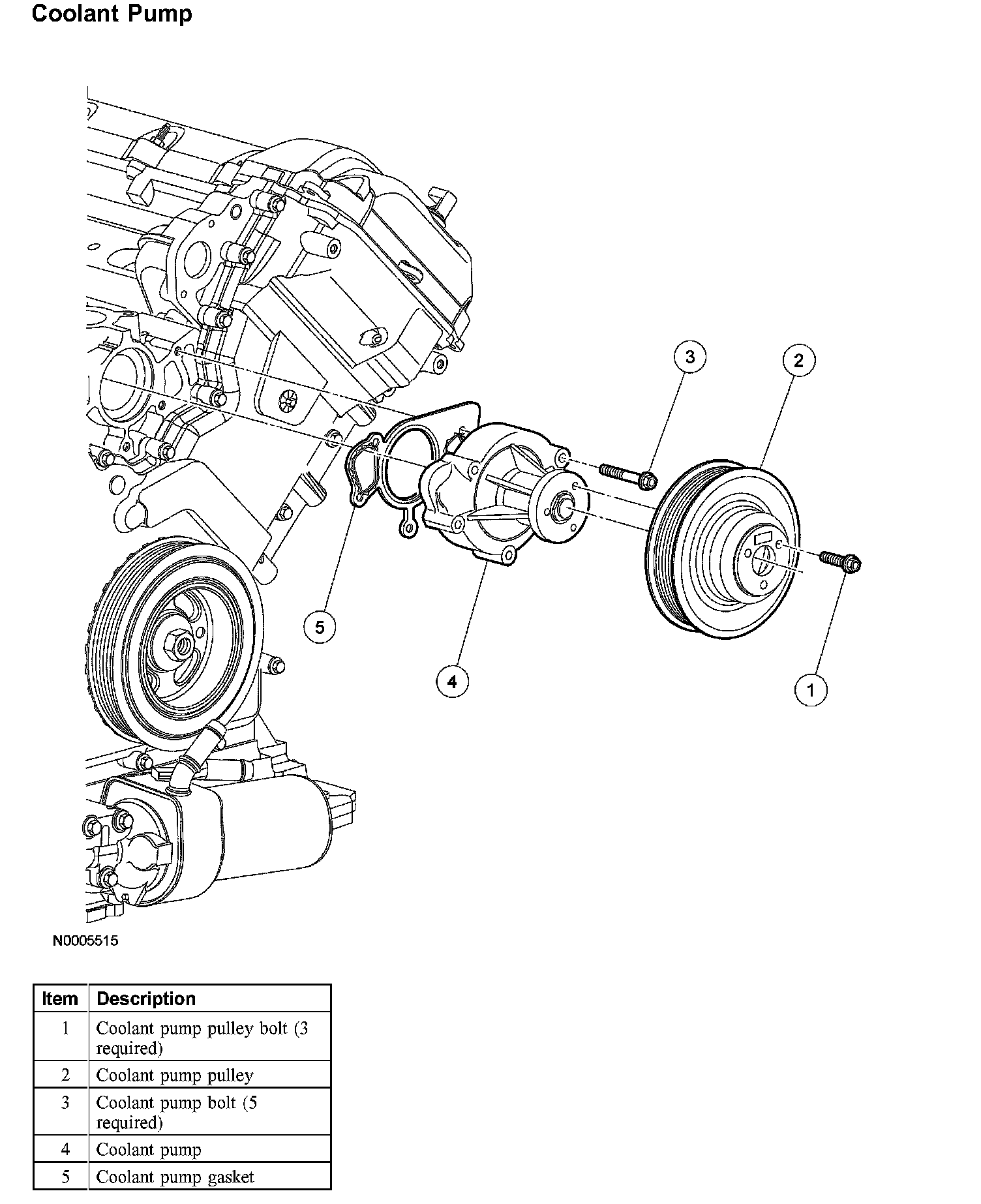 ^ Install a new coolant pump gasket.