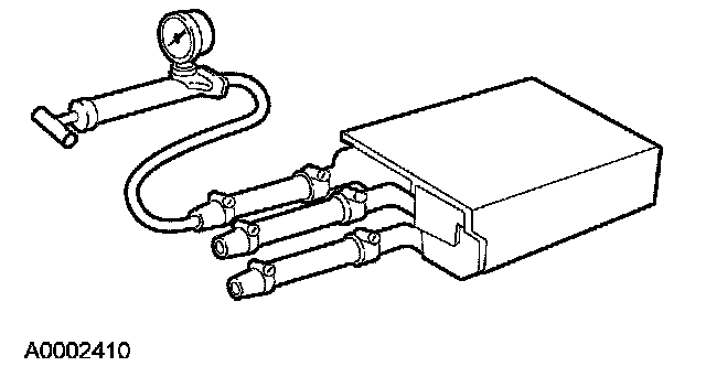 8. If the pressure drops, check the heater hose connections to the core tubes for leaks. If the heater hoses do not leak, remove the heater core from the vehicle and carry out the bench test.