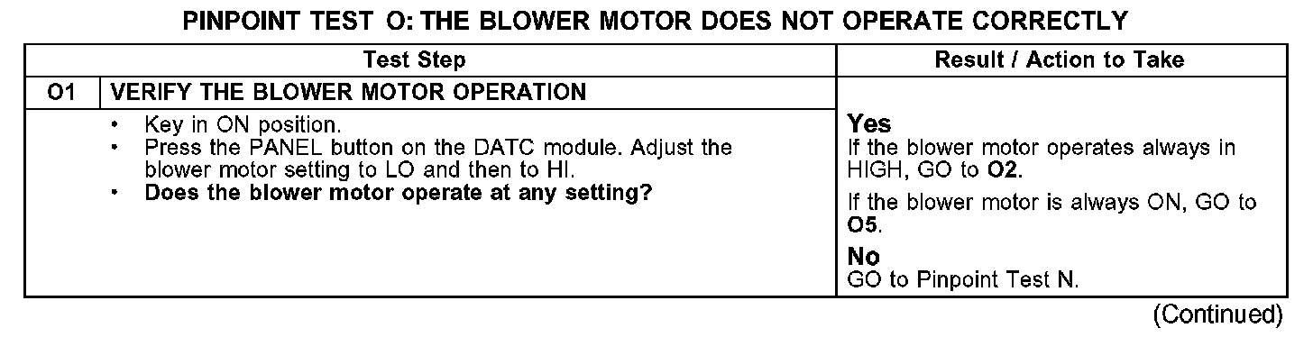 PINPOINT TEST O: THE BLOWER MOTOR DOES NOT OPERATE CORRECTLYO1:
