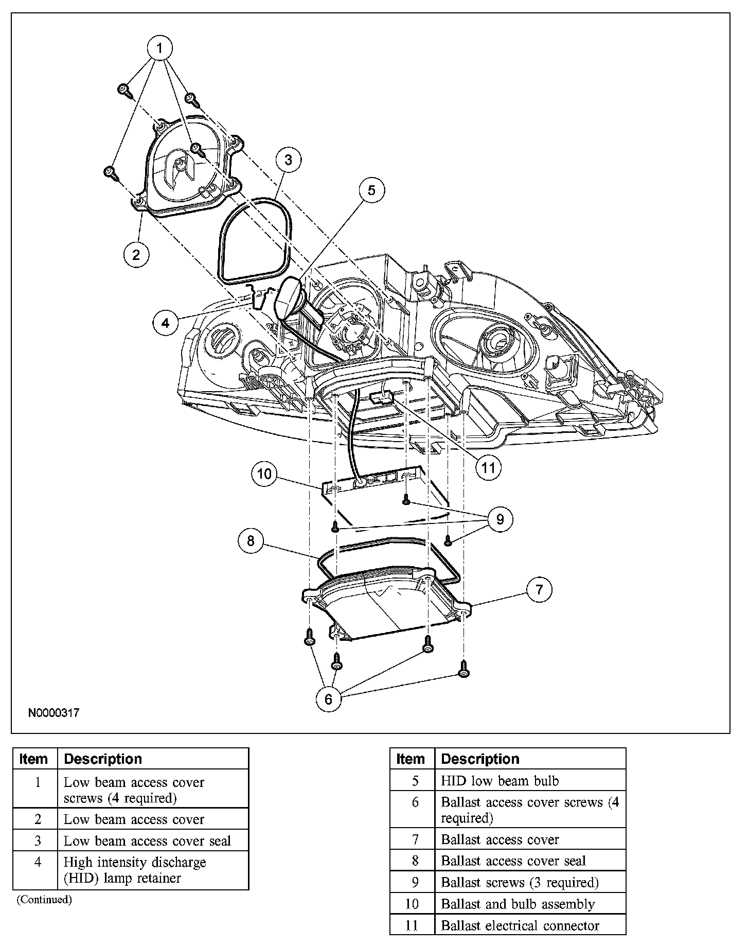 3. Release the spring retainer and separate the HID bulb from the headlamp assembly.